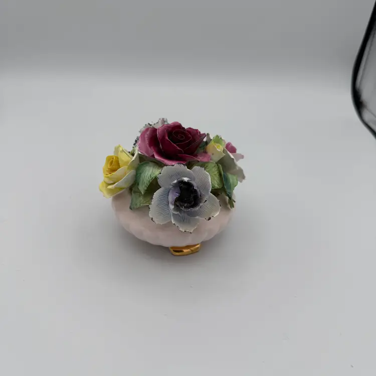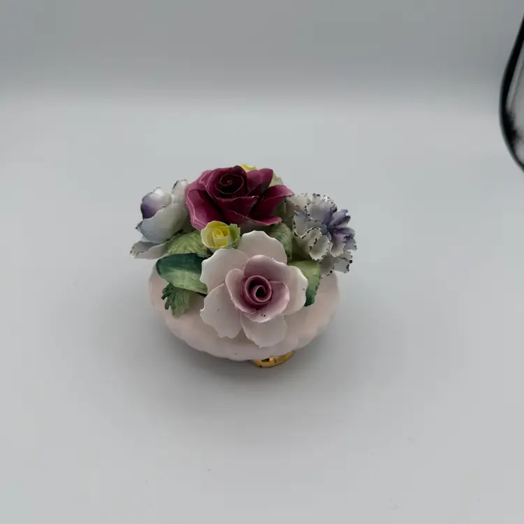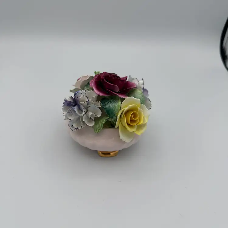 Vintage RADNOR Bone China Floral Bouquet Figurine. Hand Painted. Made In England. Features Different Colored Roses and a Carnation. 3" H X 3 1/2" W.