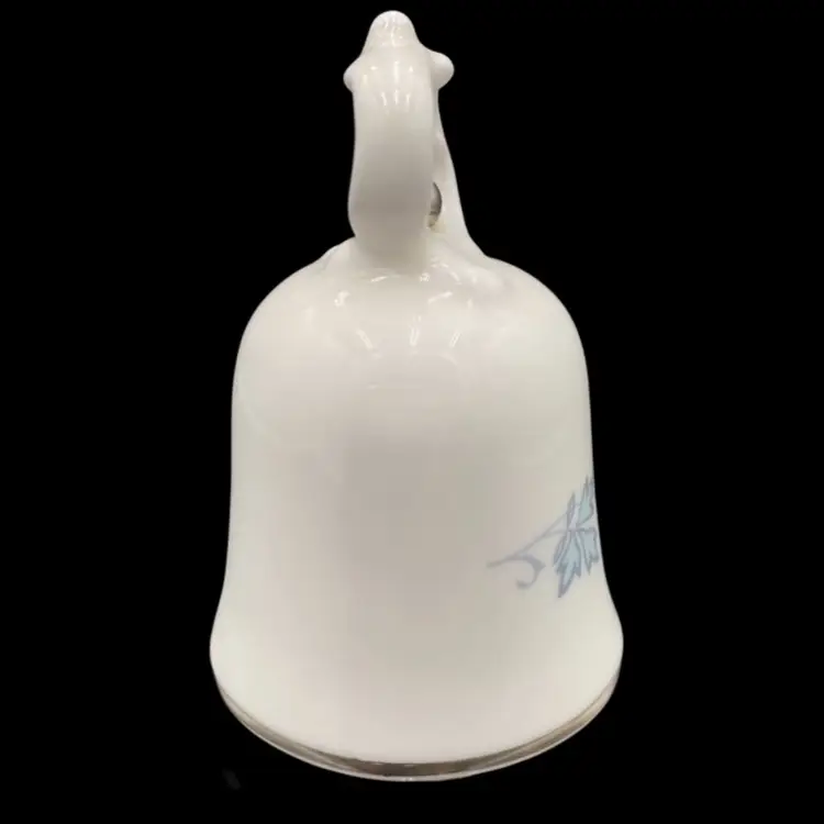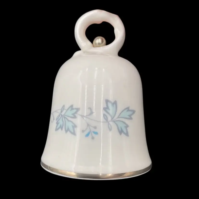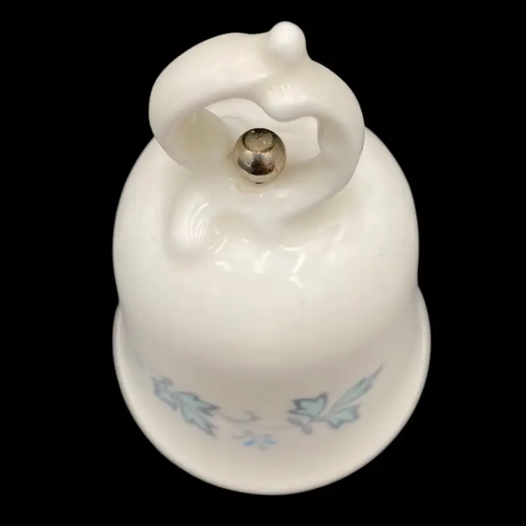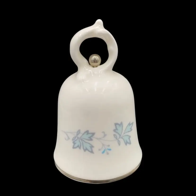 Add a classic touch to your home decor with this vintage Royal Doulton bone china bell. The elegant bell features a beautiful blue flower pattern with silver trim that adds to its glossy finish. Measuring 3 inches in height and 2 inches in width, this small bell is perfect for all occasions and can be used as a decorative collectible. This handmade bell was made in England and is crafted from high-quality bone china material. The bell is lightweight, weighing only 1.5 ounces, making it easy to handle. The bell's charming design and style make it a must-have for any collector.