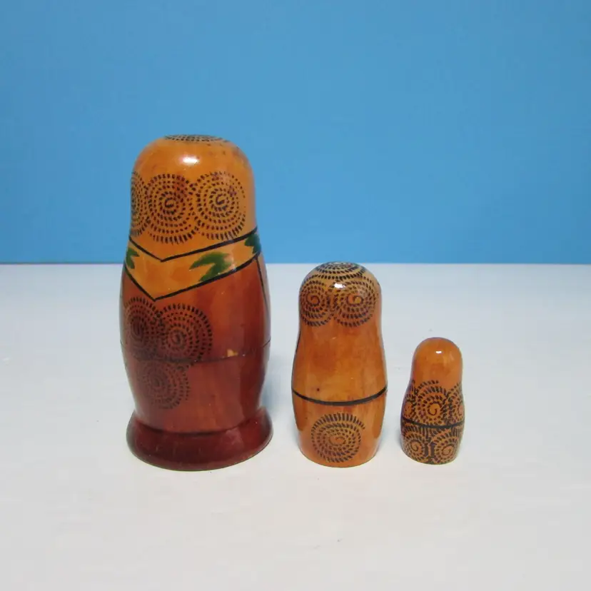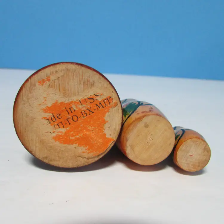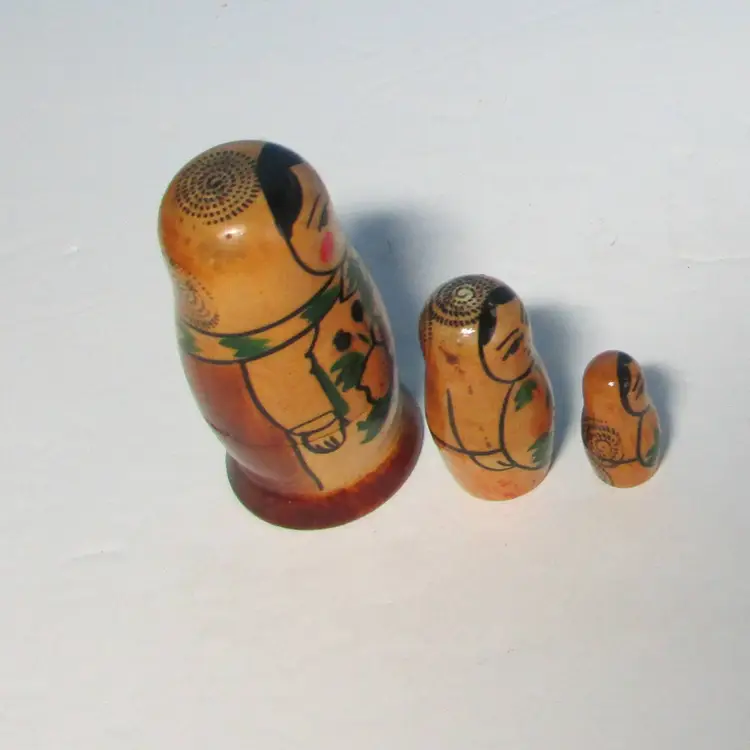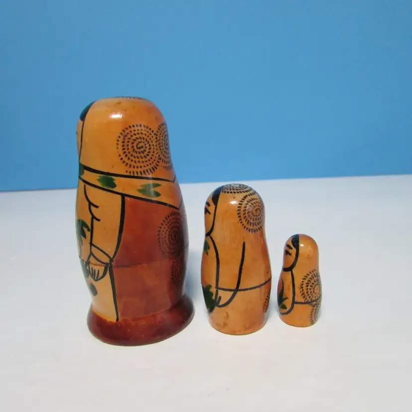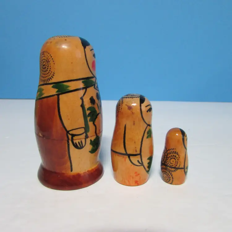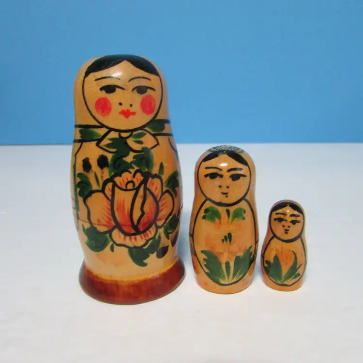 vintage set of Russian nesting dolls 3 figures Matryoshka hand-painted wood USSR