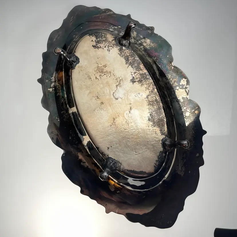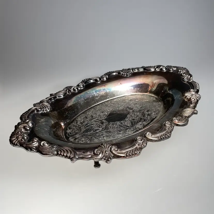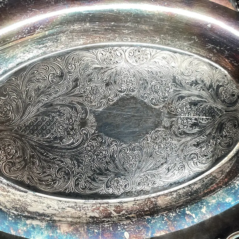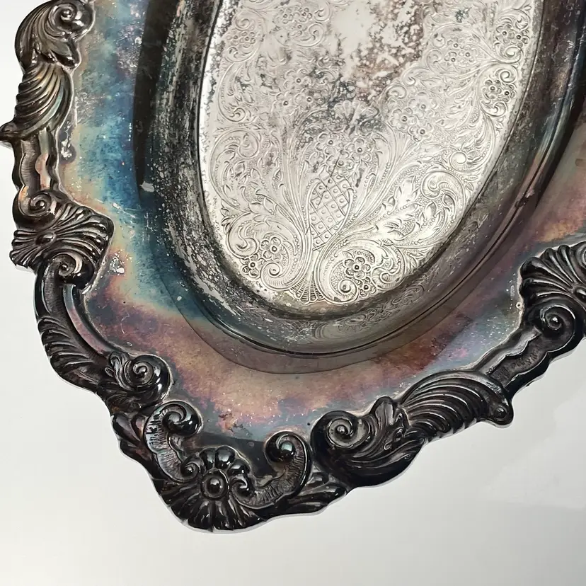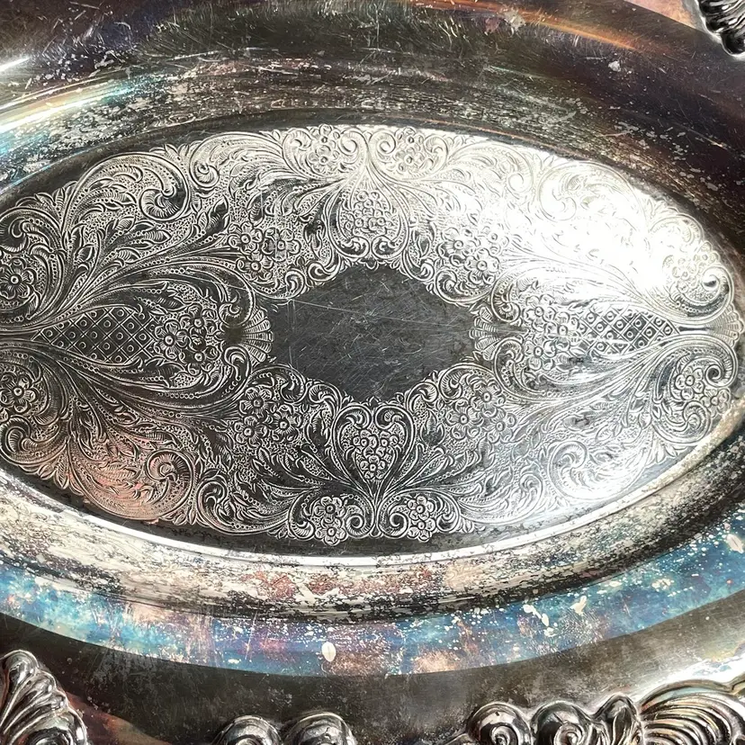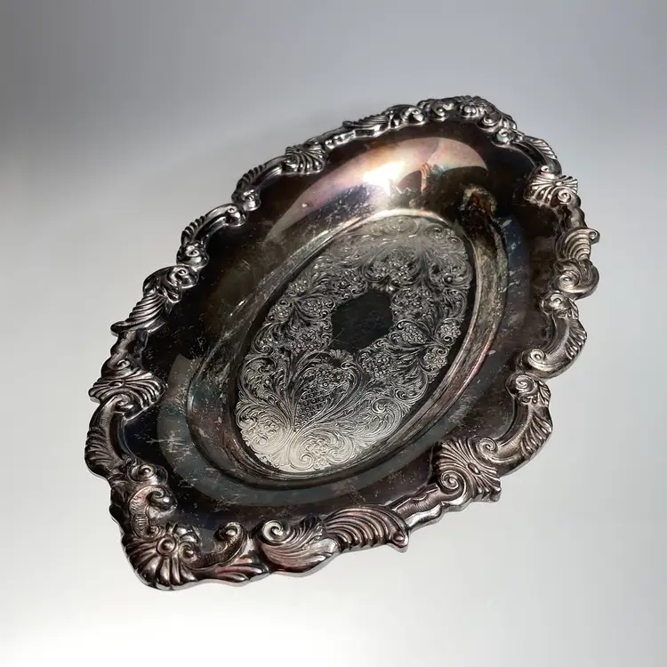 Measurements are approximate: 13 inches long, 8 inches wide (base of platter about 4 in wide x 7.25 in long)