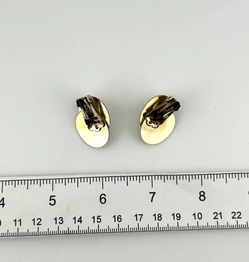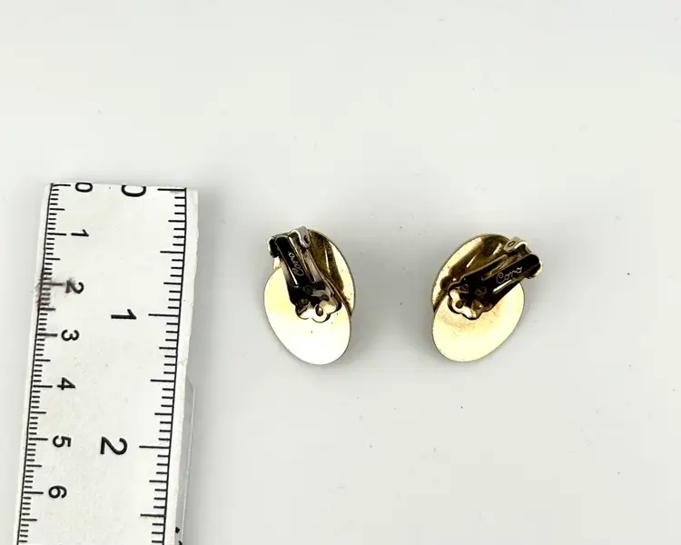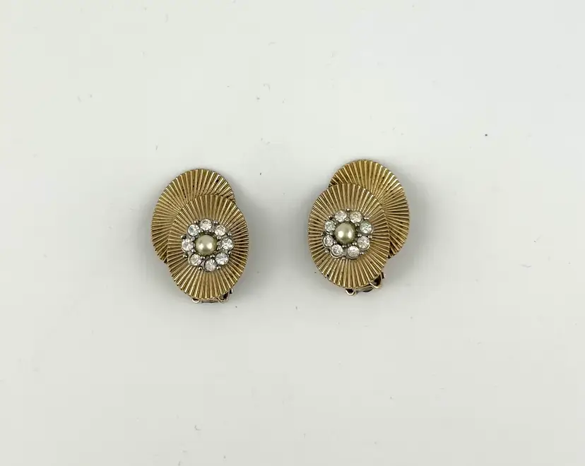 Vintage Signed Coro Gold Tone Glass Pearl and Crystal Clip-on Earrings 1”