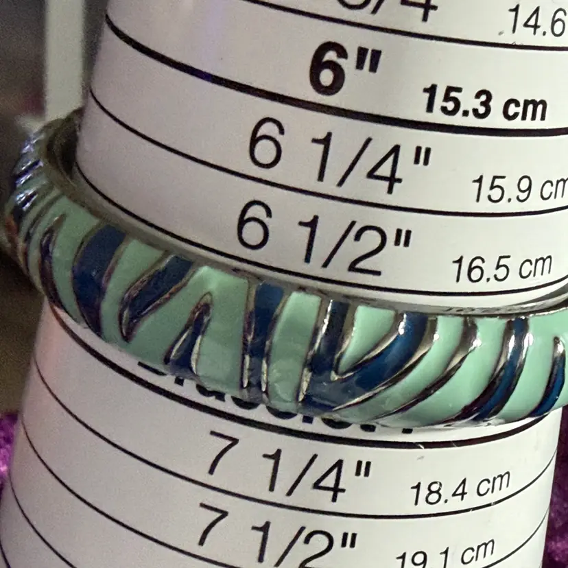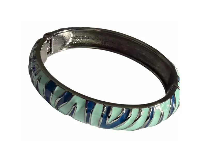Vintage Silver Tone Blue Enamel Animal Stripe Clamper Bracelet Size 7”