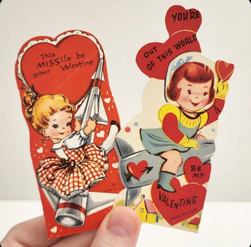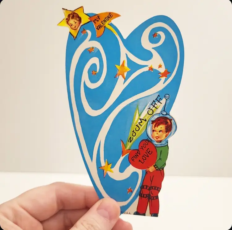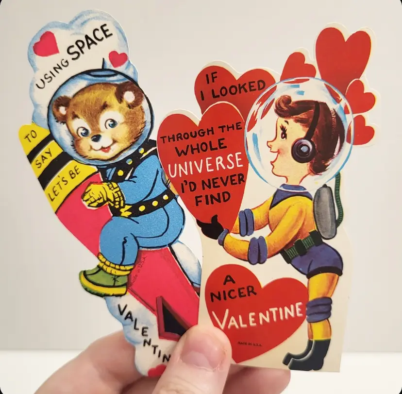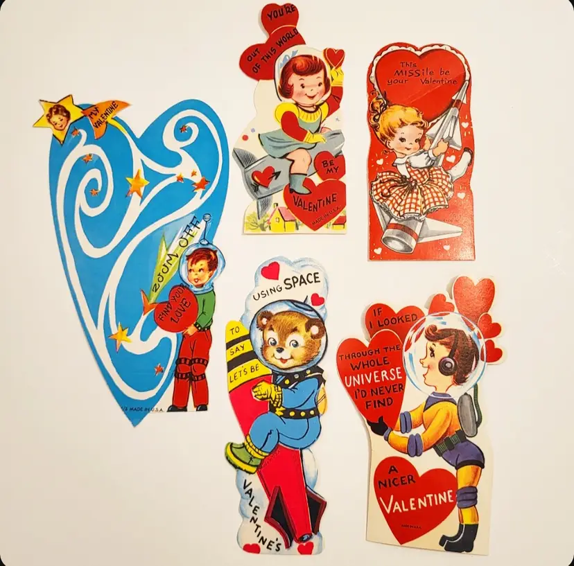 Vintage Valentine Card Lot of 5 cards all with a space theme! Scroll for all photos, read details below