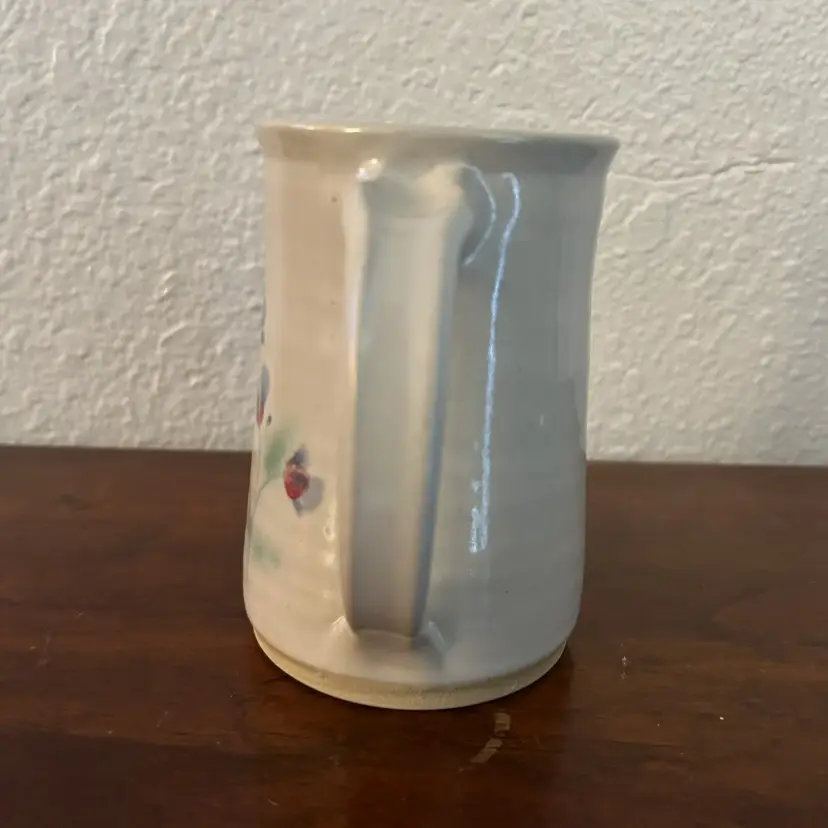 Studio Pottery Floral Mug Cottagecore Artist Signed Neutral