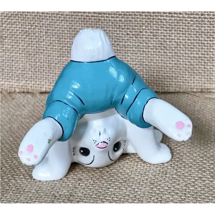 Condition: Small mark on the foot of the bunny doing a handstand.