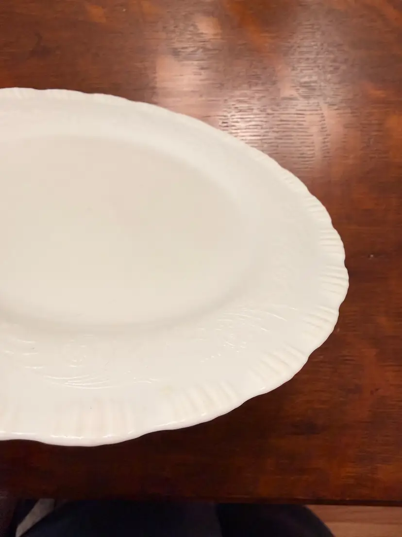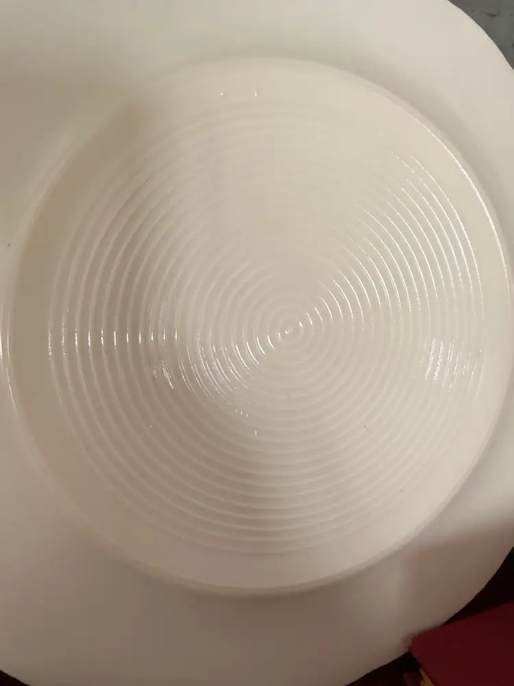 Details Diameter: approx. 9.5 inches Material: Uranium milk glass Color: opaque white / ivory Era: Depression era, circa 1930s–1940s Markings: none Condition: very good vintage condition with light age-appropriate wear; no cracks or chips noted UV reactive (see black light photo)
