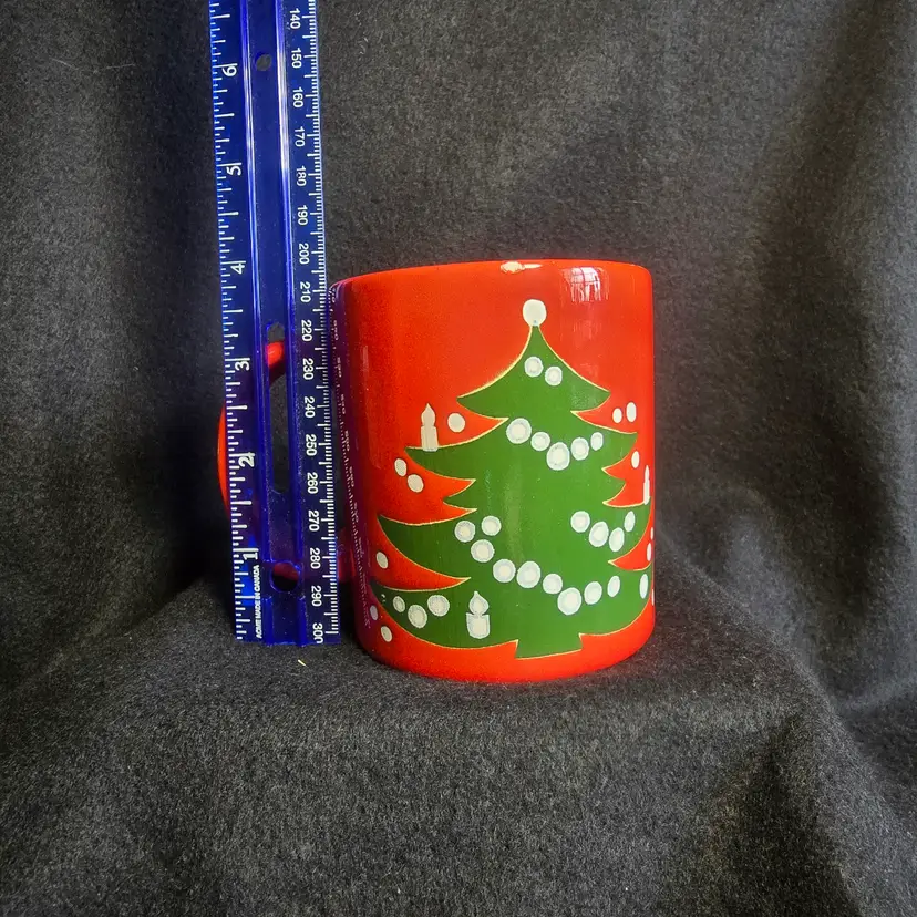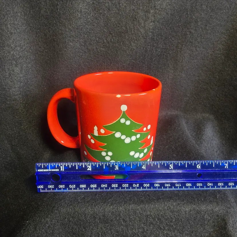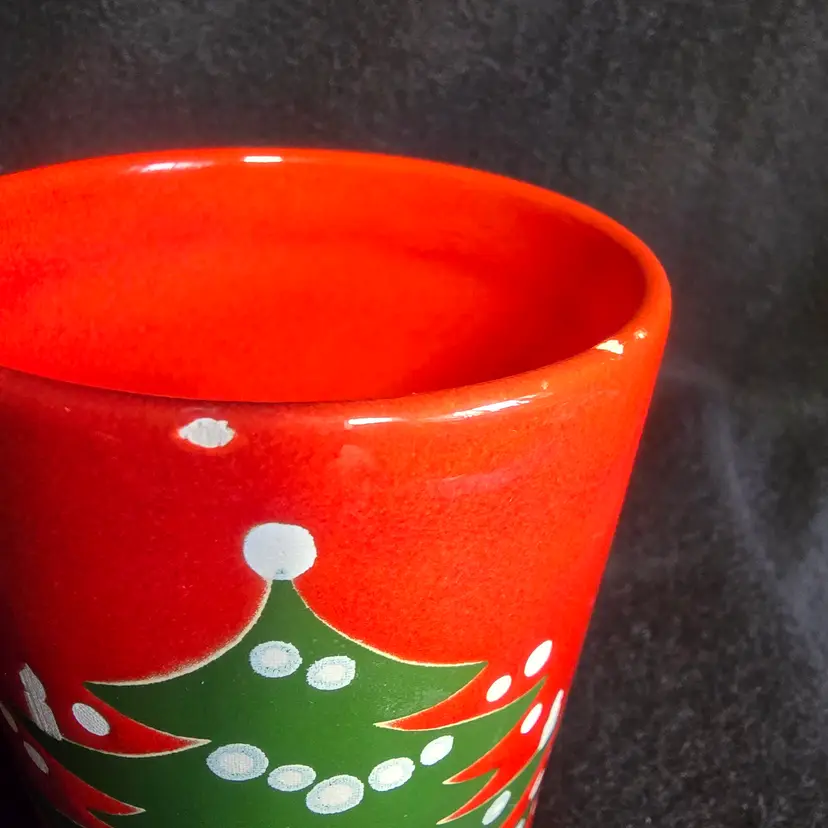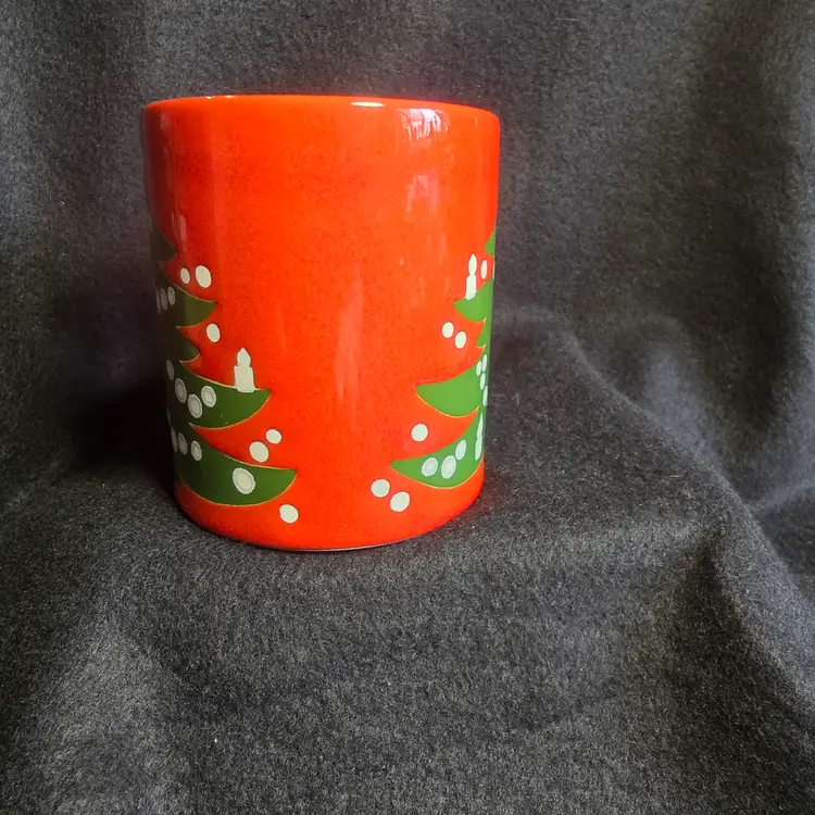 Highlights: Wächtersbach stoneware mug Classic Christmas Tree pattern Vibrant red glaze with green/white design Made in Germany Approx. 4" tall