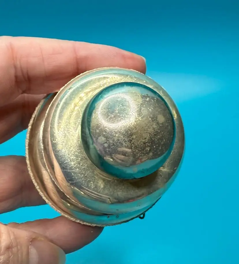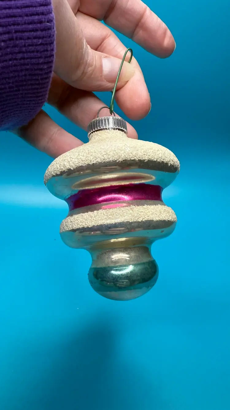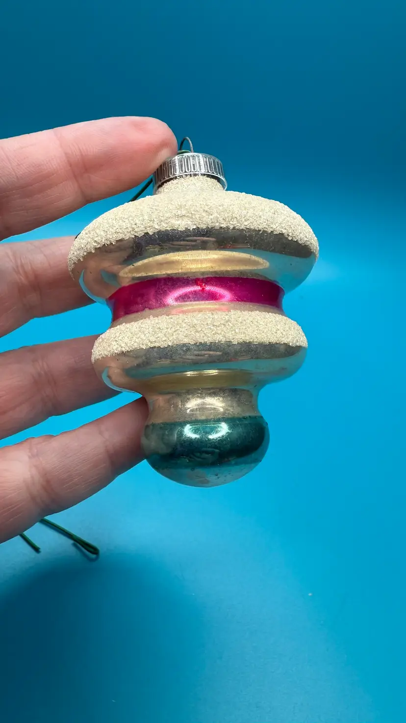 Vintage West Germany Glass UFO Bell Christmas Ornament Mica & Painted Striped #2