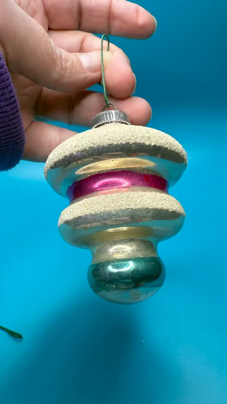Vintage West Germany Glass UFO Bell Christmas Ornament Mica & Painted Striped #2. No broken or missing pieces, wear/scratches from age and use, spotting/paint loss. Please see photos for condition. Combined shipping is available for more than one item purchased in the United States. If you have any questions, please feel free to ask. Please review all photos and the description for condition of item(s), PLEASE NOTE: Due to lighting the color of items may vary! There is not an easy way to get the exact color match when taking a photo. Please know that we do our very best to describe and photograph all known issues or problems in a listing. All items come from a smoke free home. No returns, all items purchased as is. We do our very best to describe any issues or problems.