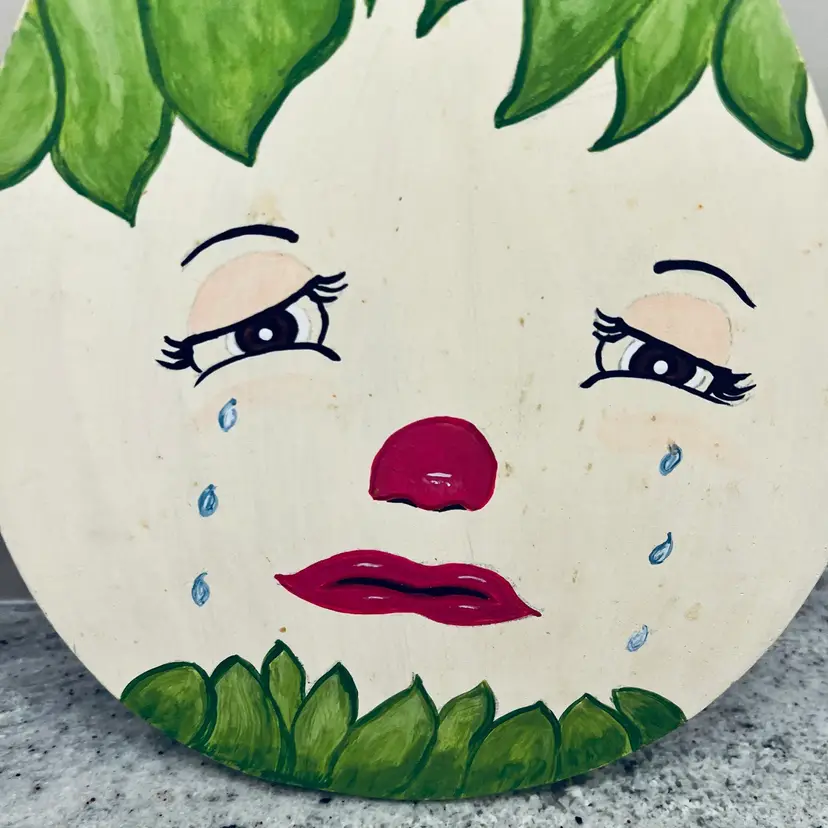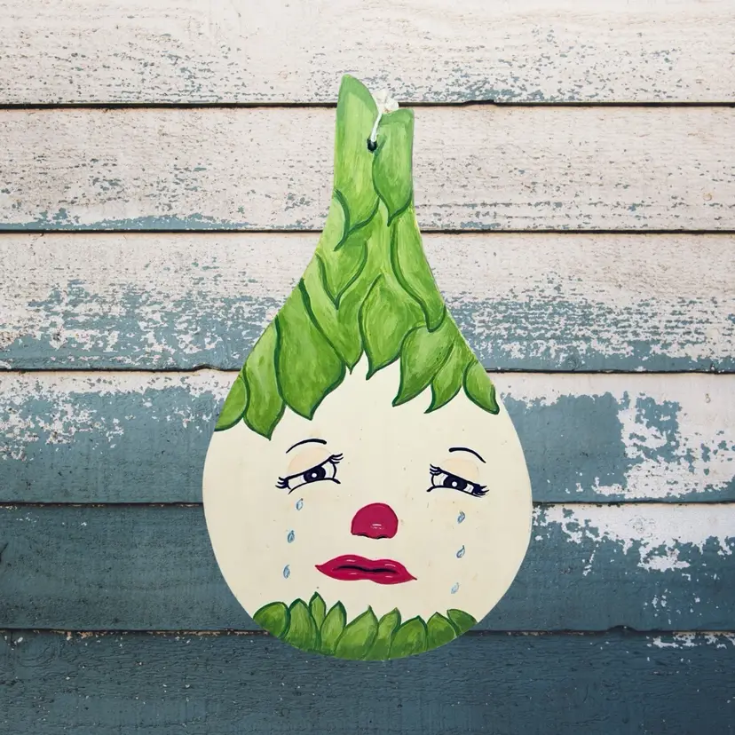 Vintage Wood Anthropomorphic Green Onion Crying Wood Wall Hanging Kitchen Decor
