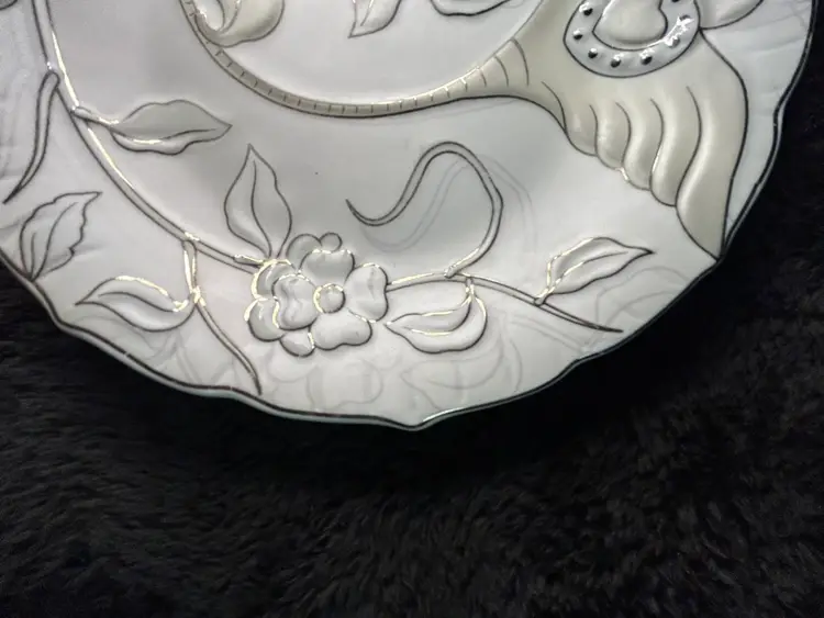 The Vintage Yamasen Gold Collection Fine Porcelain Plate is a luxurious and elegant piece made in Japan. Featuring 24Kt gold accents, this plate showcases the craftsmanship and artistry of Japanese culture. With its fine porcelain material and intricate design, this collectible item is sure to be a cherished addition to collection.