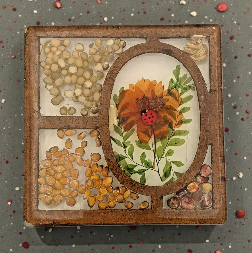 A few small scratches, please see photos for details Material: Acrylic, Mixed Materials, Seeds, Pressed Flowers Brand: Design Gifts International Time Period Manufactured: 1970-1979 Country/Region of Manufacture: United States Item Width: 5.5 in Item Weight: 9.2 oz