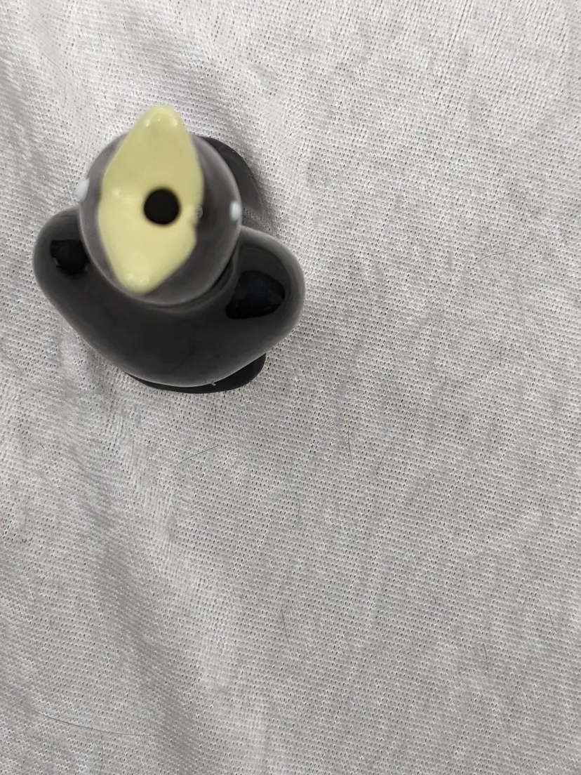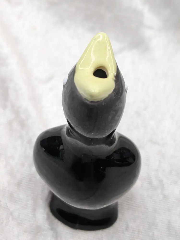 Vtg 4" Ceramic Black Pie Bird Baking Steam Vent White Beak Raven Crow Funnel . Would make a cute Gift . Nice for the Holiday pie. Great condition Clean with no damage.no chips or cracks no weird smells. Please check the photos for details. Comes from a smoke free home. We do have pets.