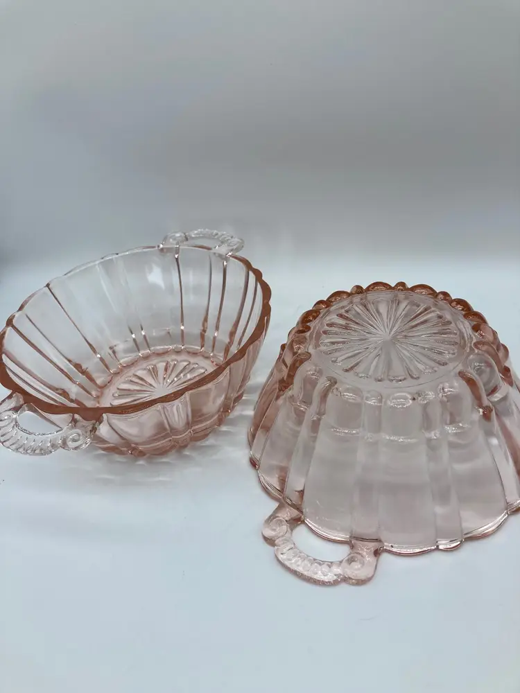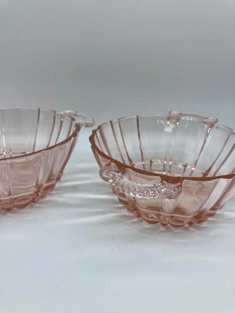 VTG Anchor Hocking Old Cafe Pink Depression Glass 5 1/2" Bowl 2 Open Handles