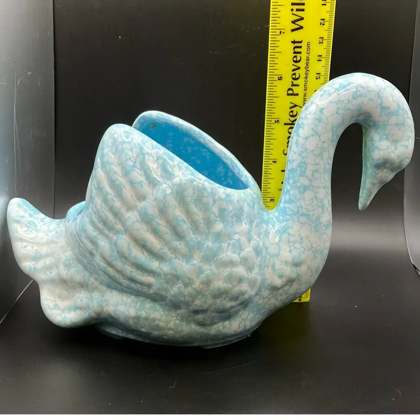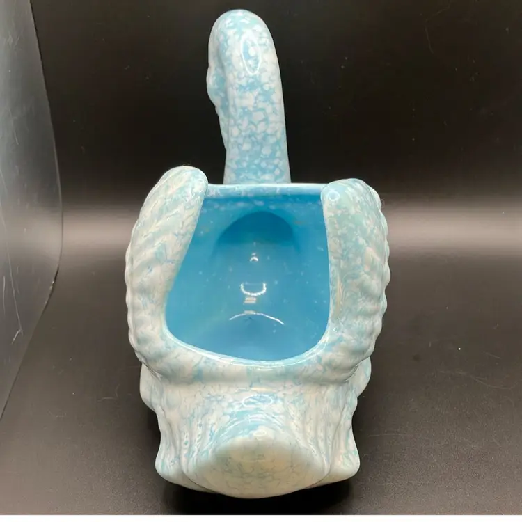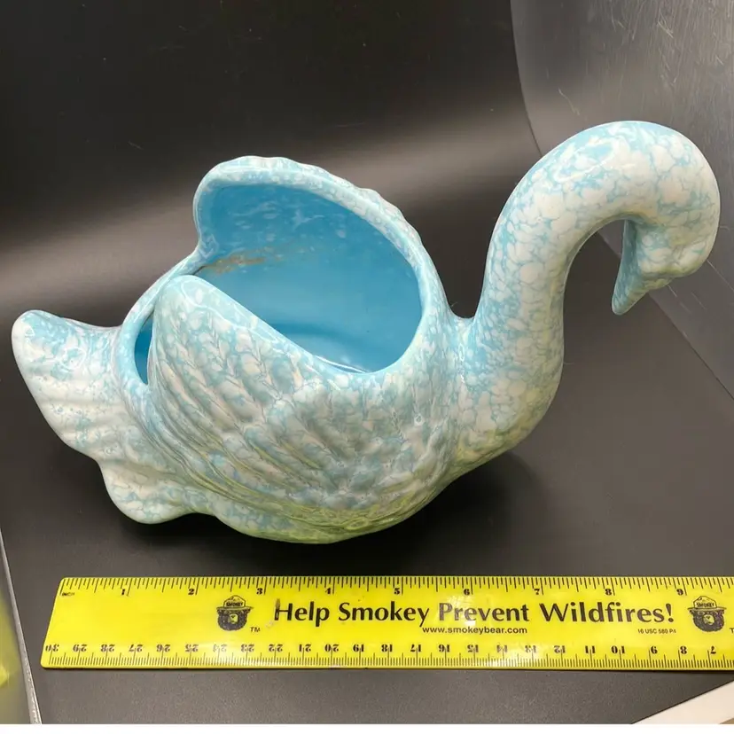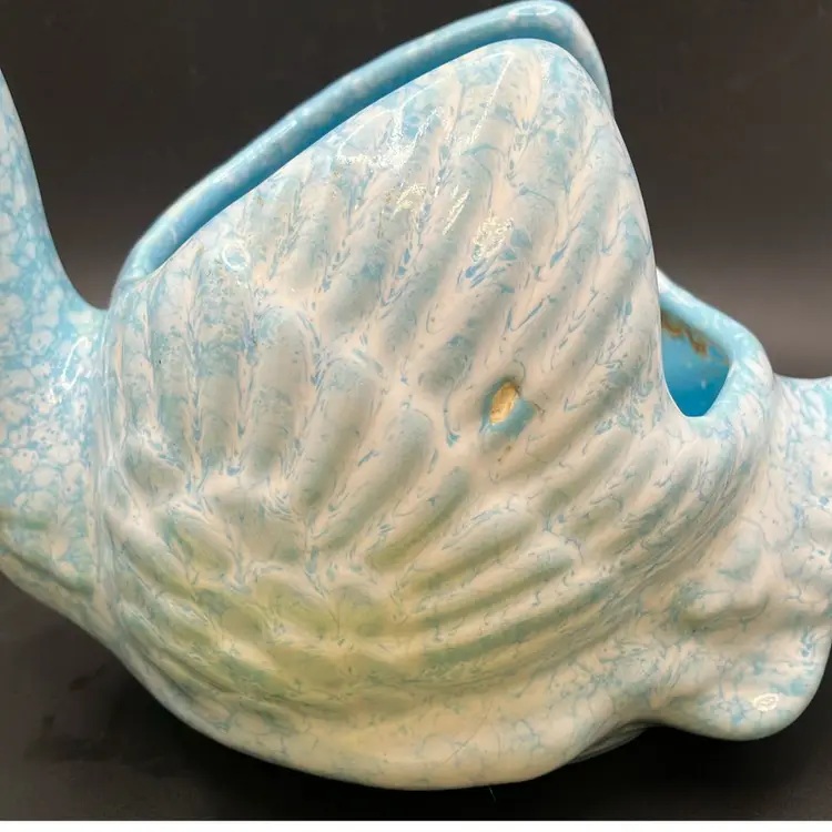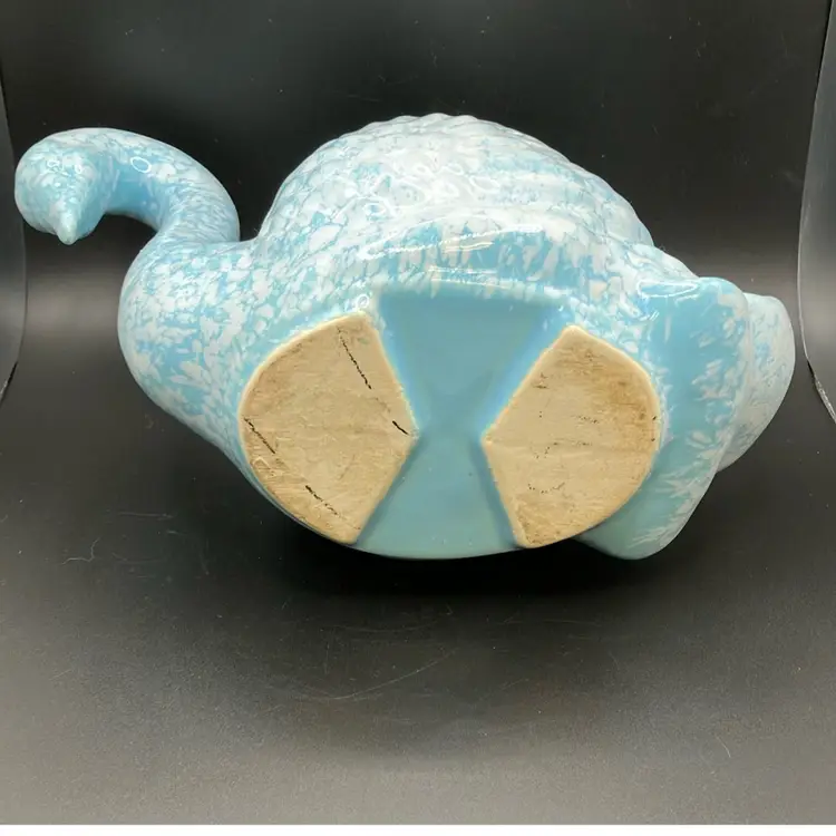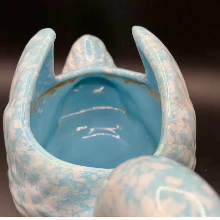 Good condition, tiny glaze miss on one side. Inside has residue and some crazing. Price reflects imperfection.