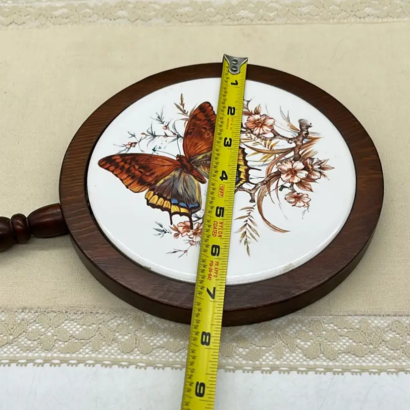 Vtg Bug Butterfly Ceramic Trivet Mounted In Wood