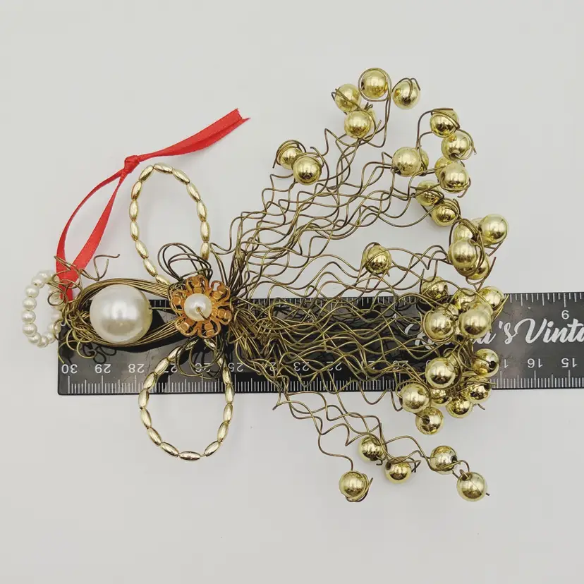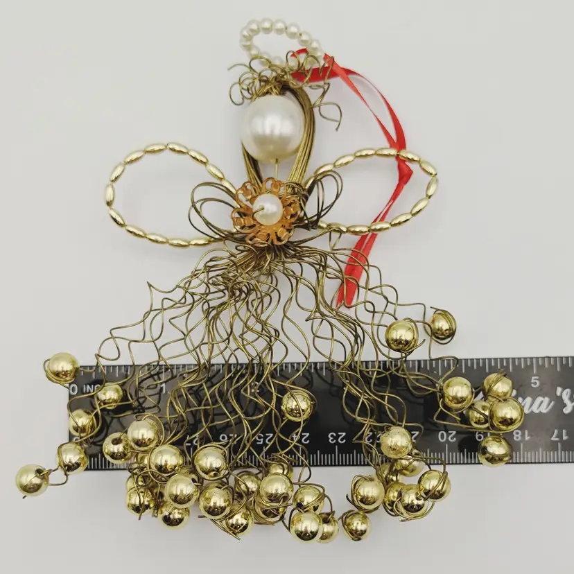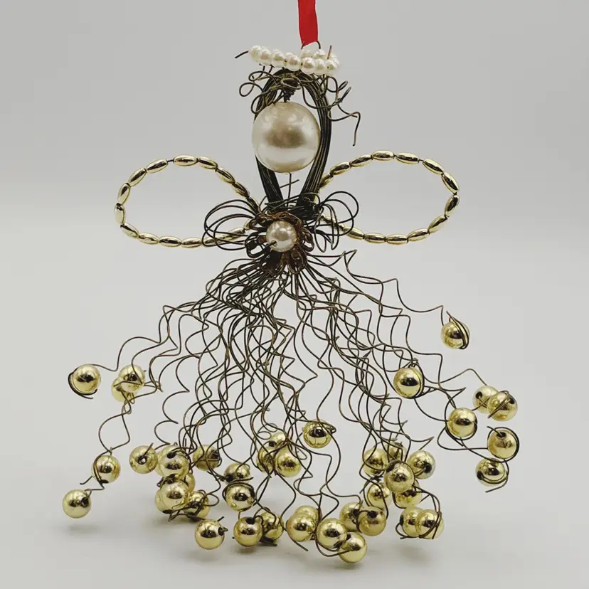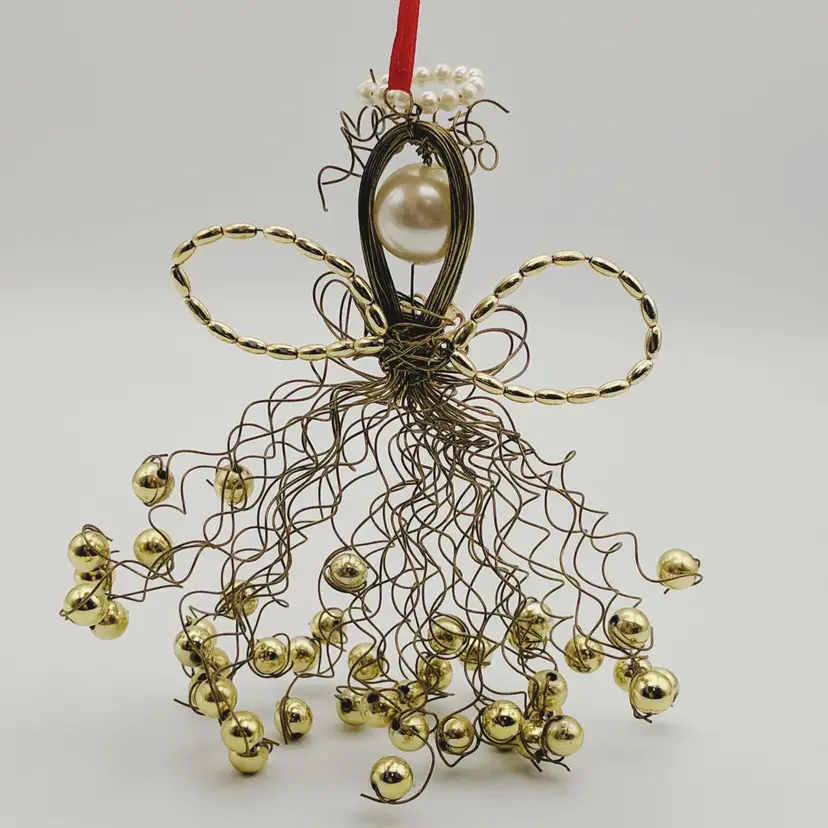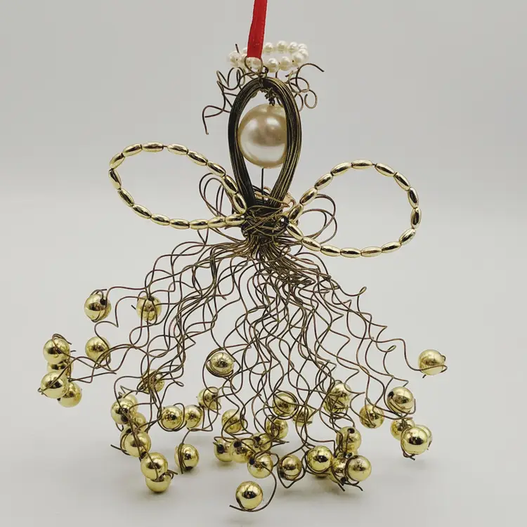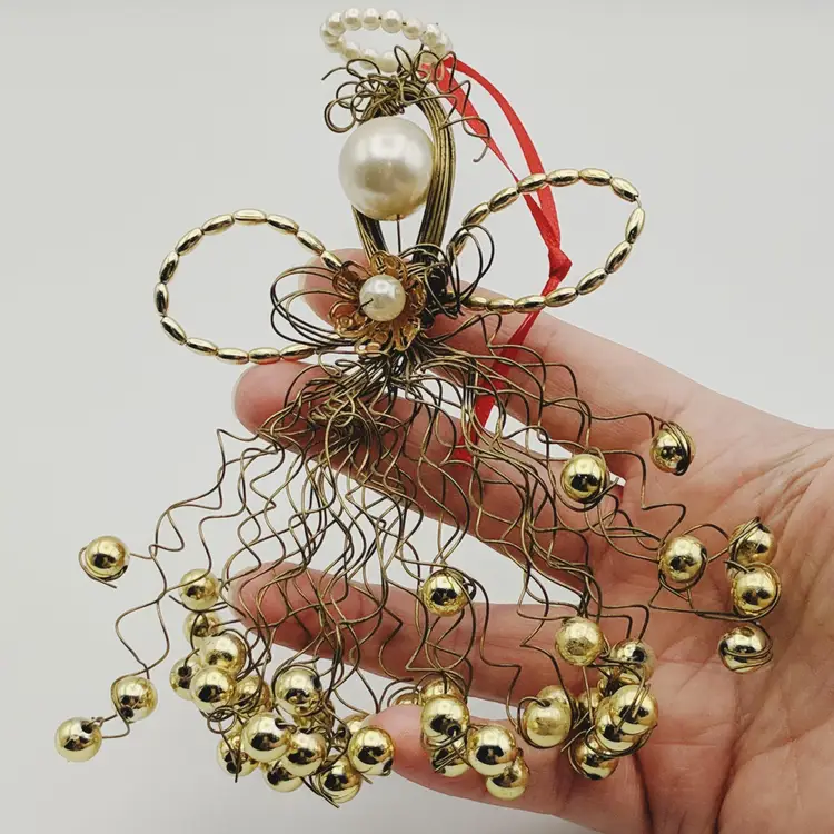 Vtg Christmas Ornament Angel Gold Wire Faux Pearls La Bona Angelica Style