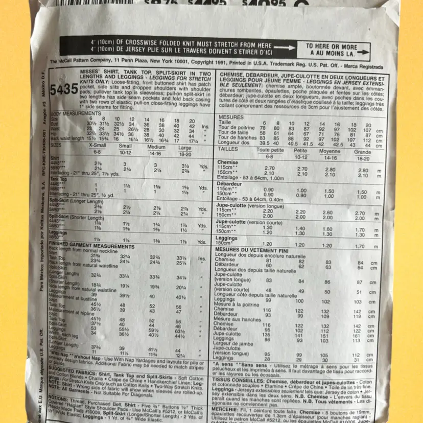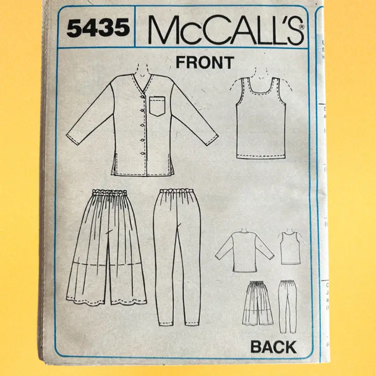 Vtg McCall’s Pattern 5434 Shirt, Tank Top, Split-Skirt, Leggings Uncut FF Please see photos. Let me know if you have any questions. Thank you for stopping by.