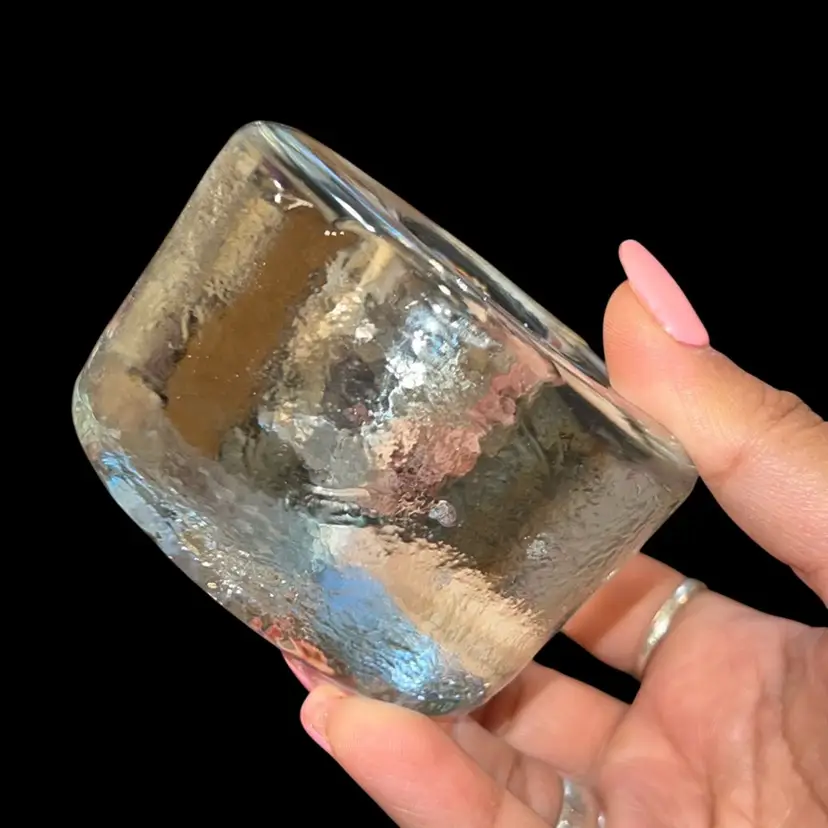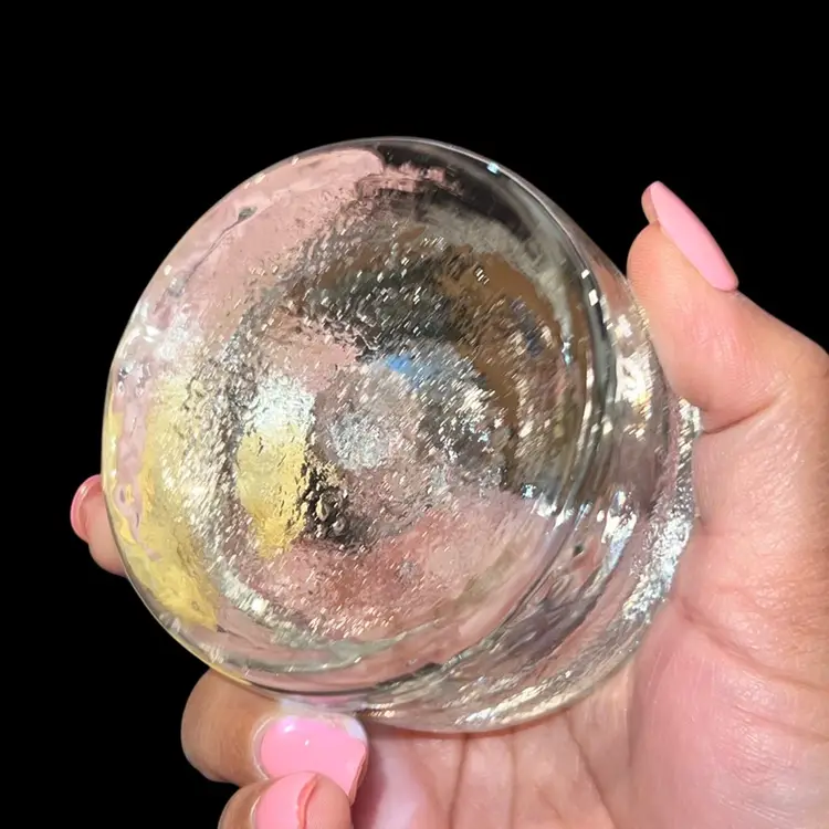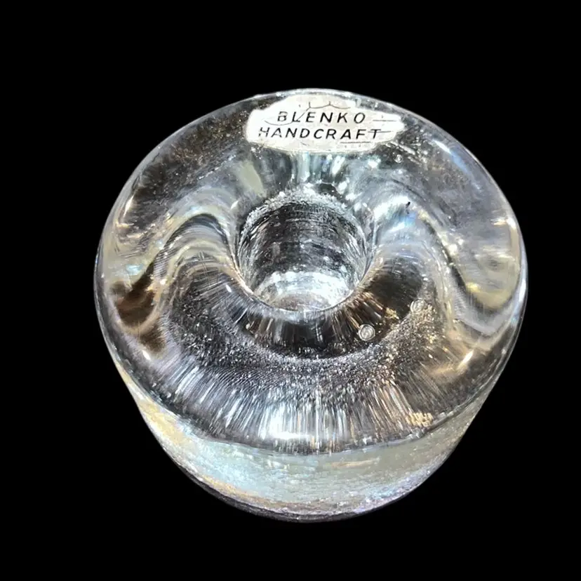 Vtg MCM Blenko Round Clear Art Glass Candle Holder Original Sticker