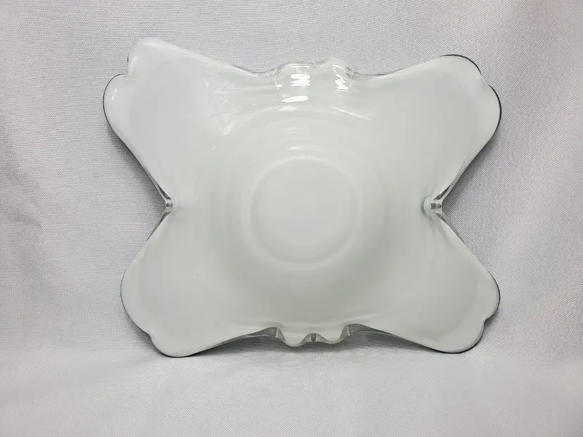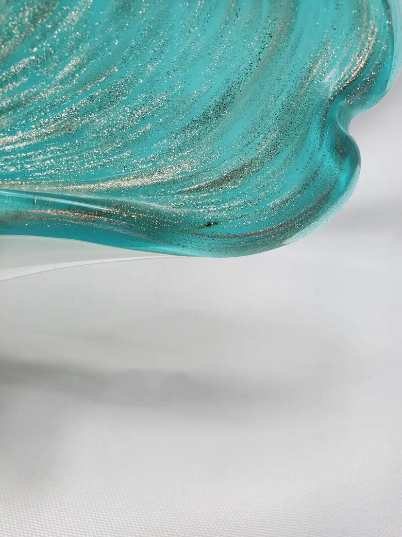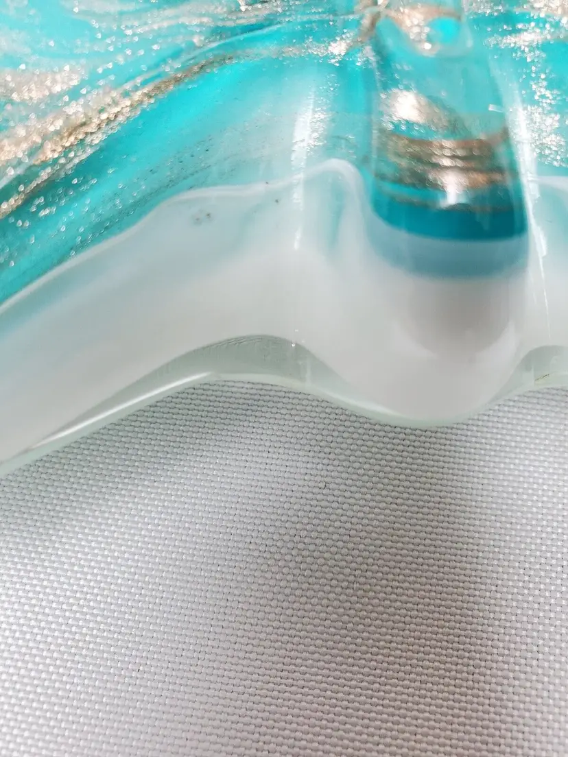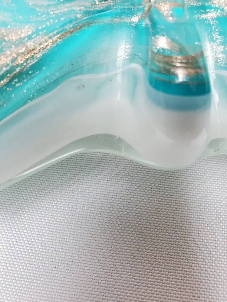 VTG Murano White Case Teal Glass Swirl Ashtray Gold Flake Butterfly Shape