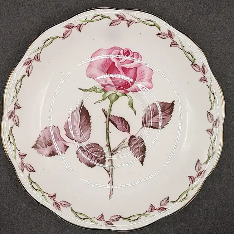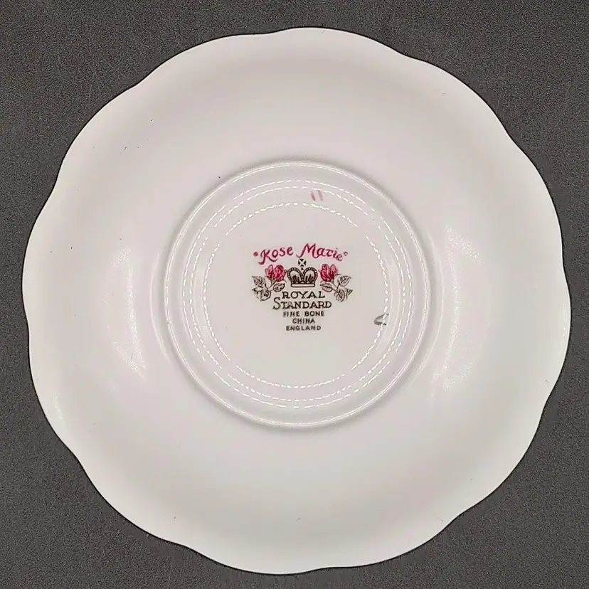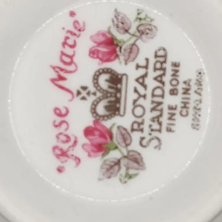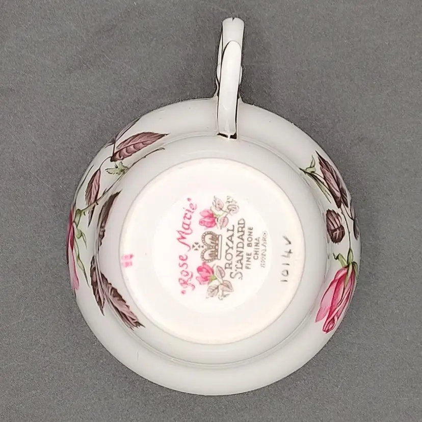 Vintage Royal Standard Rose Marie Bone China Teacup and Saucer in good condition with no chips or cracks teacup height 3" x diameter 3.5"/Saucer diameter 5.5".Made in England