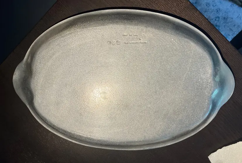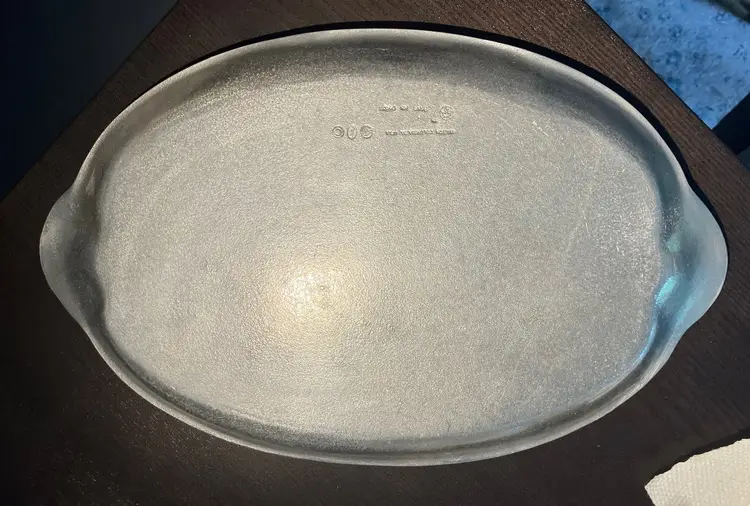 Used condition with scratches and wear. It is vintage but I don't know the year it was made. This is lighter weight than the armftale version. This one says that it was made in Columbia, PA. Perfect as a serving tray or tabletop display for the holidays! 16 1/2" by 10 1/2". Weighs 2 lbs before packaging.