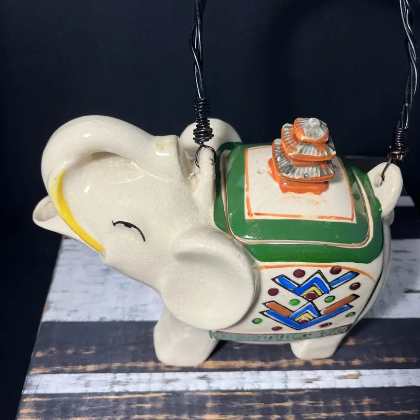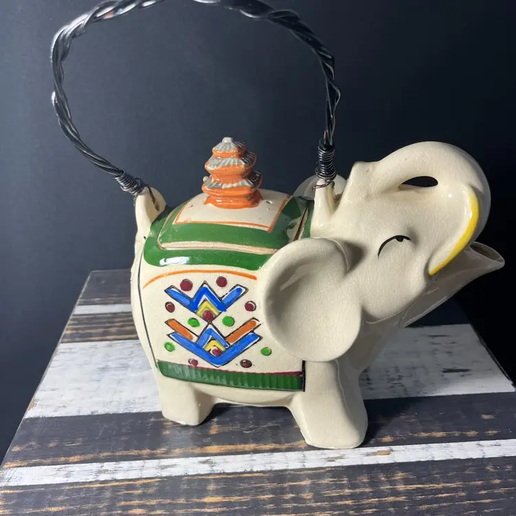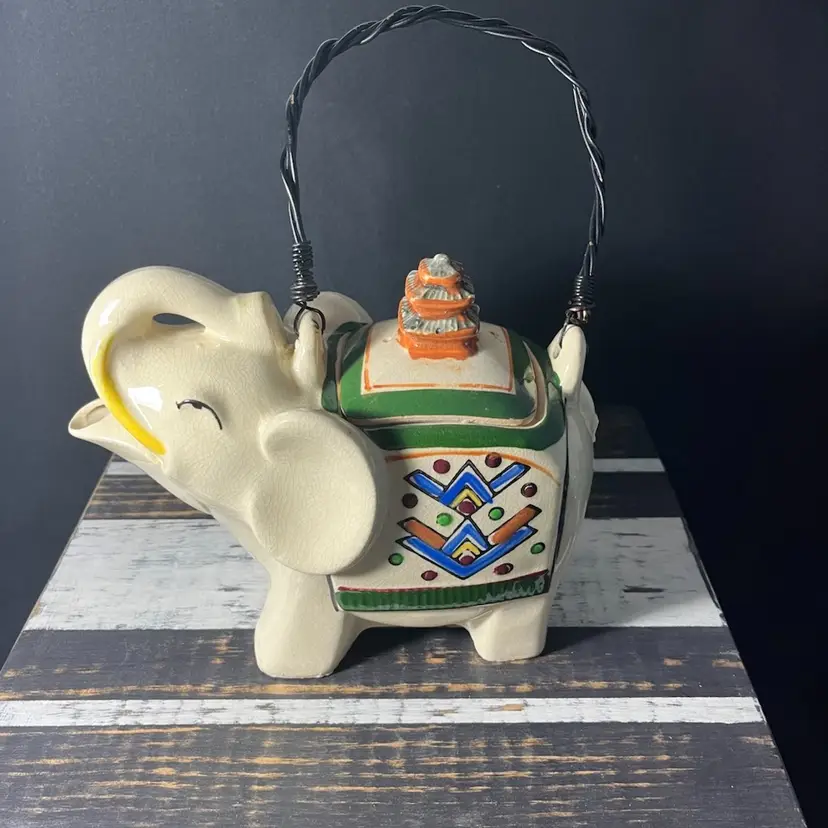 #1013. Amazing VTG/Antique Porcelain Elephant Teapot Hand painted In Japan. Measures 6.25” x 7.75”. Heavy crazing. No chips or cracks.