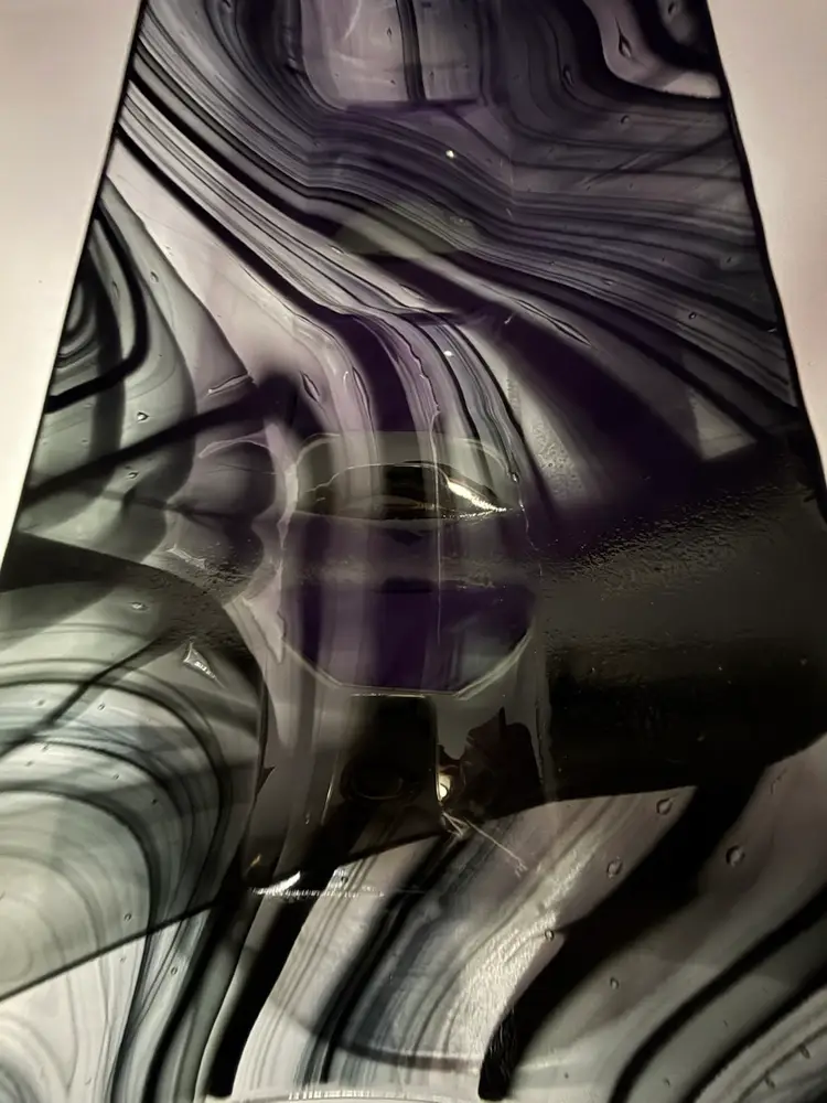 The piece showcases the classic Italian bullicante effect, an intentional technique where controlled bubbles are trapped within the layers of glass, adding texture, depth, and a luxurious, collectible flair.