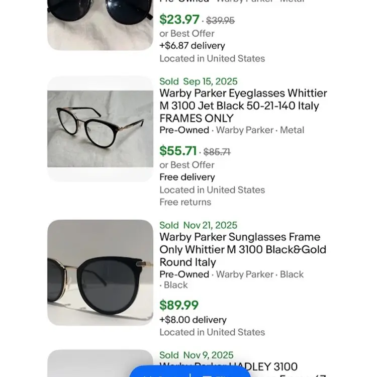 In good - great condition. Comes with cases. 4 total. Most sell in the $20 range with the whittier going for more. & You should be able to get more with the cases. One of the lenses wipes is a Warby, the other is a Kate spade.