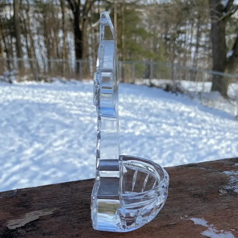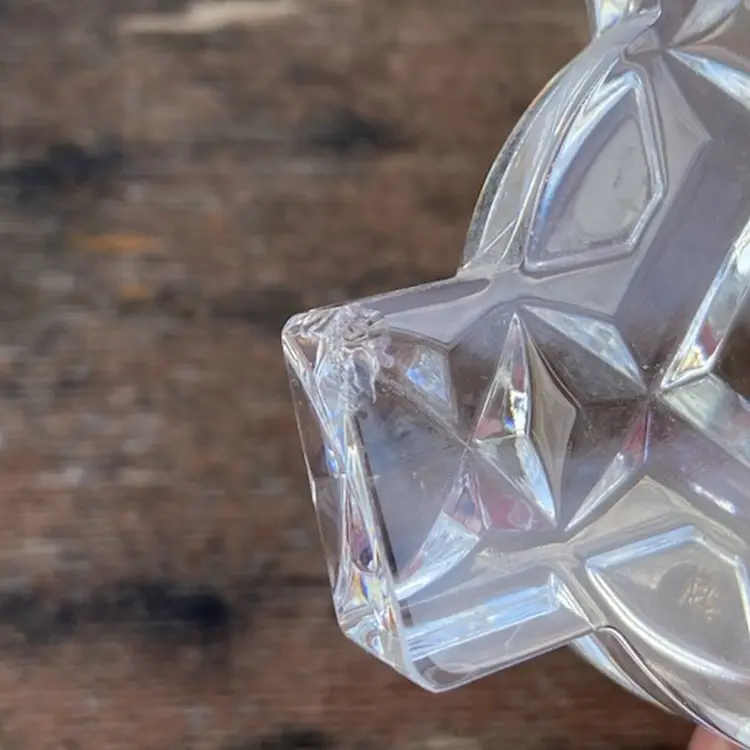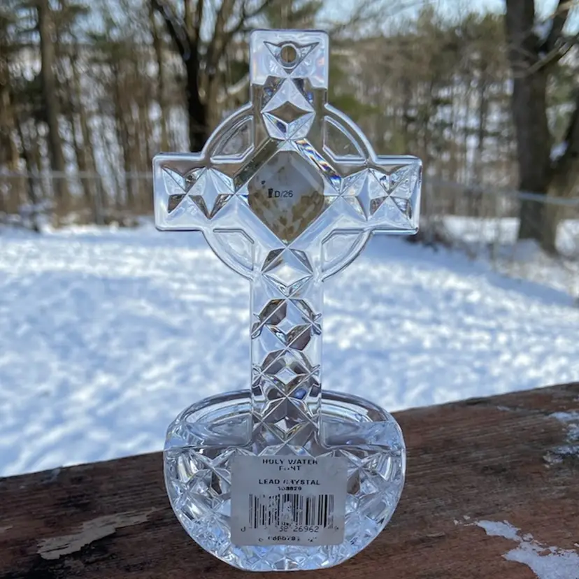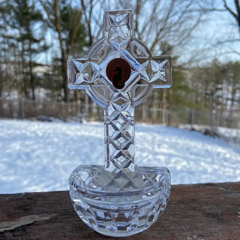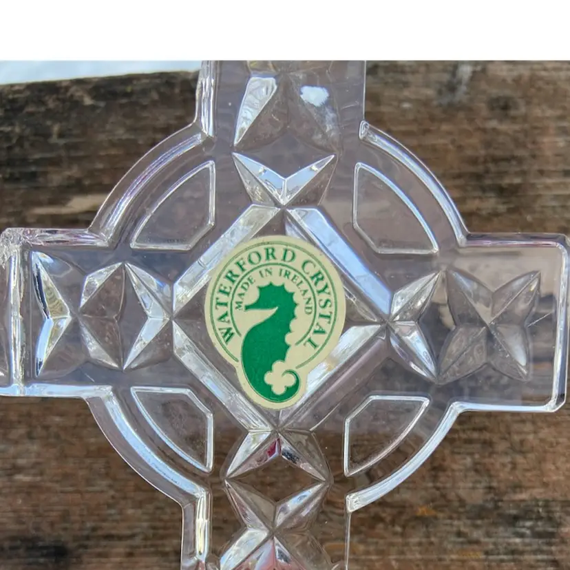 Approx: 5 7/8”h x 2.75”w x 2 1/8”d. Hole for hanging. Preowned condition. No cracks. *Chip on upper corner on left-hand / front side of cross. See images as part of description.