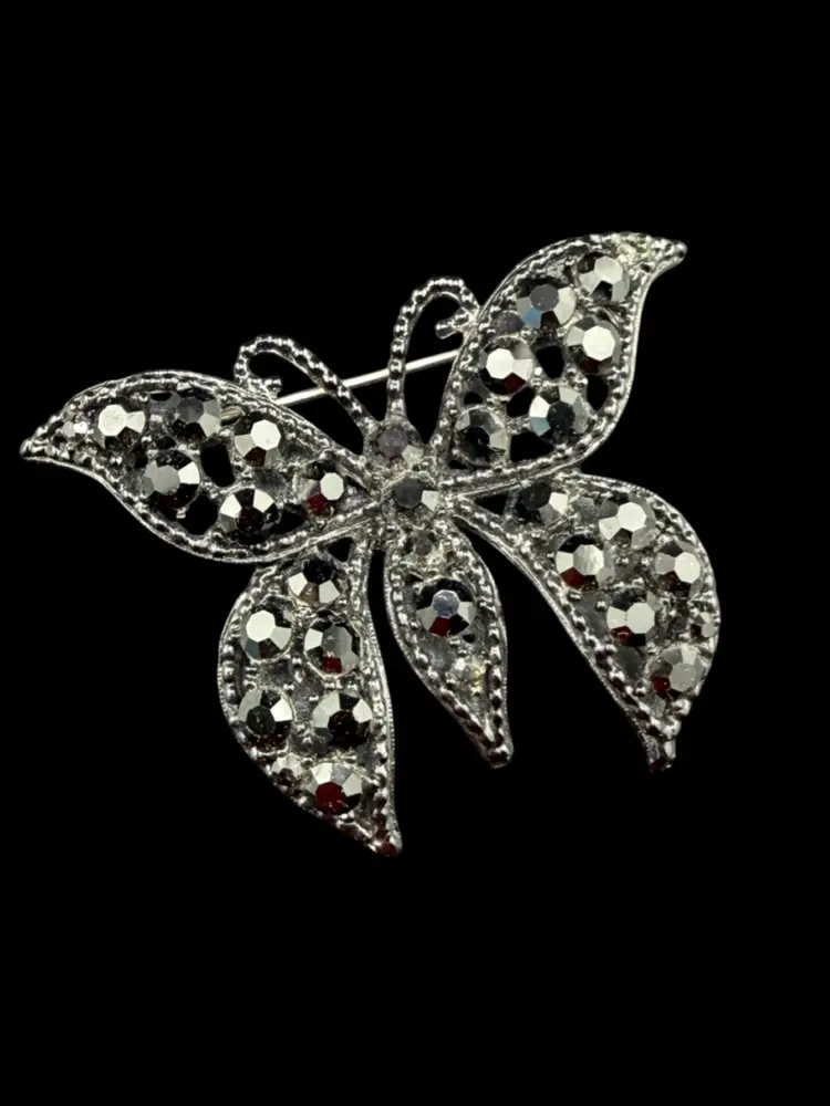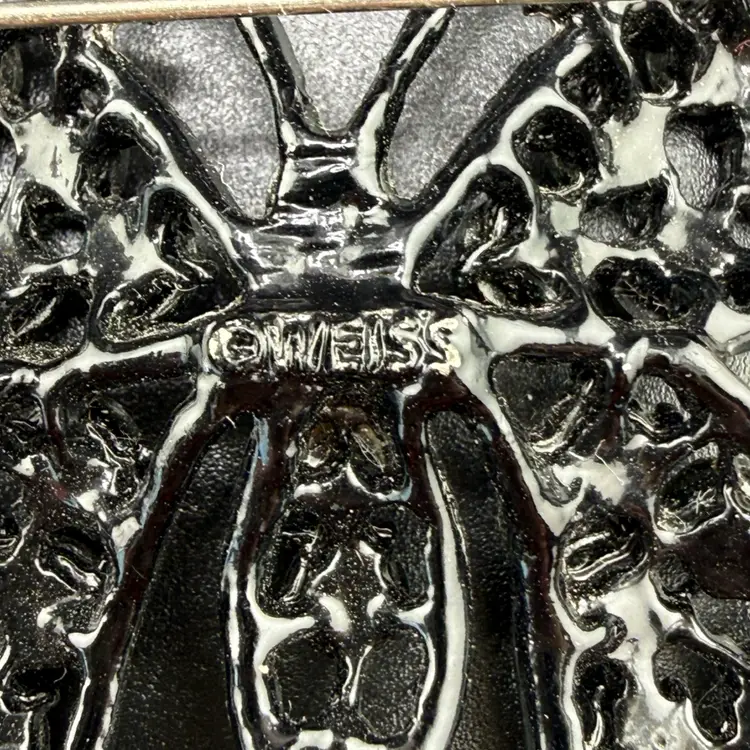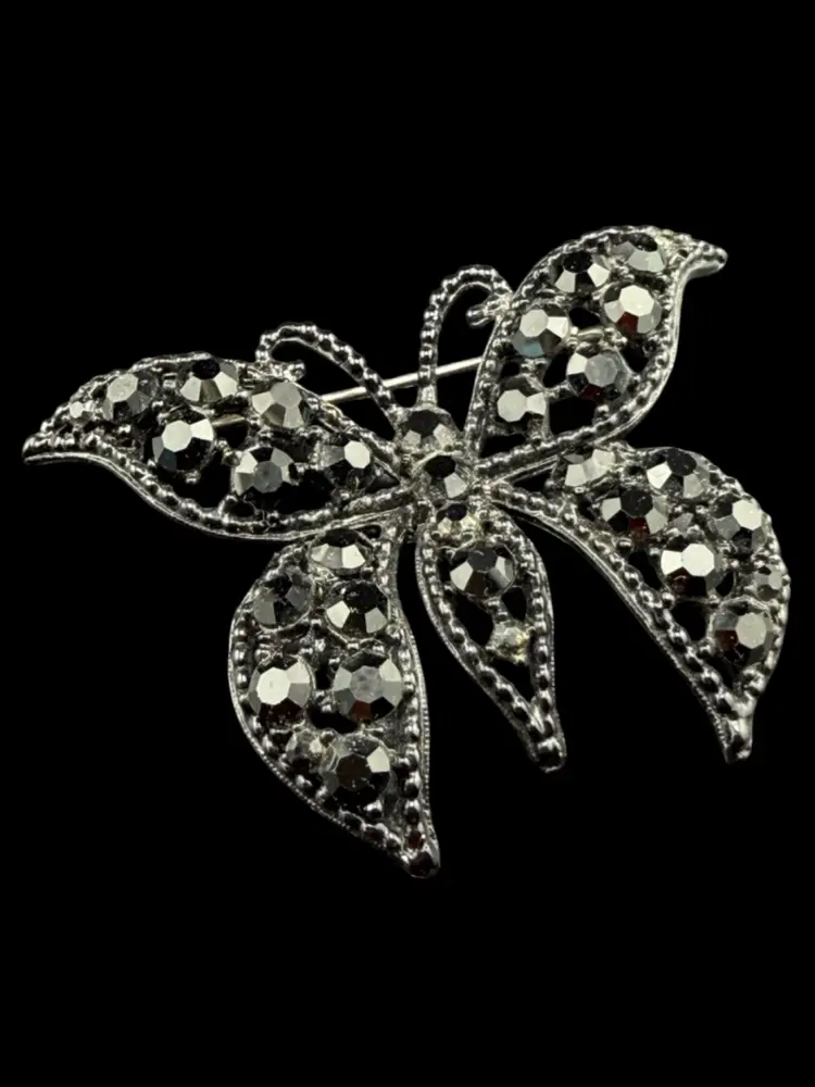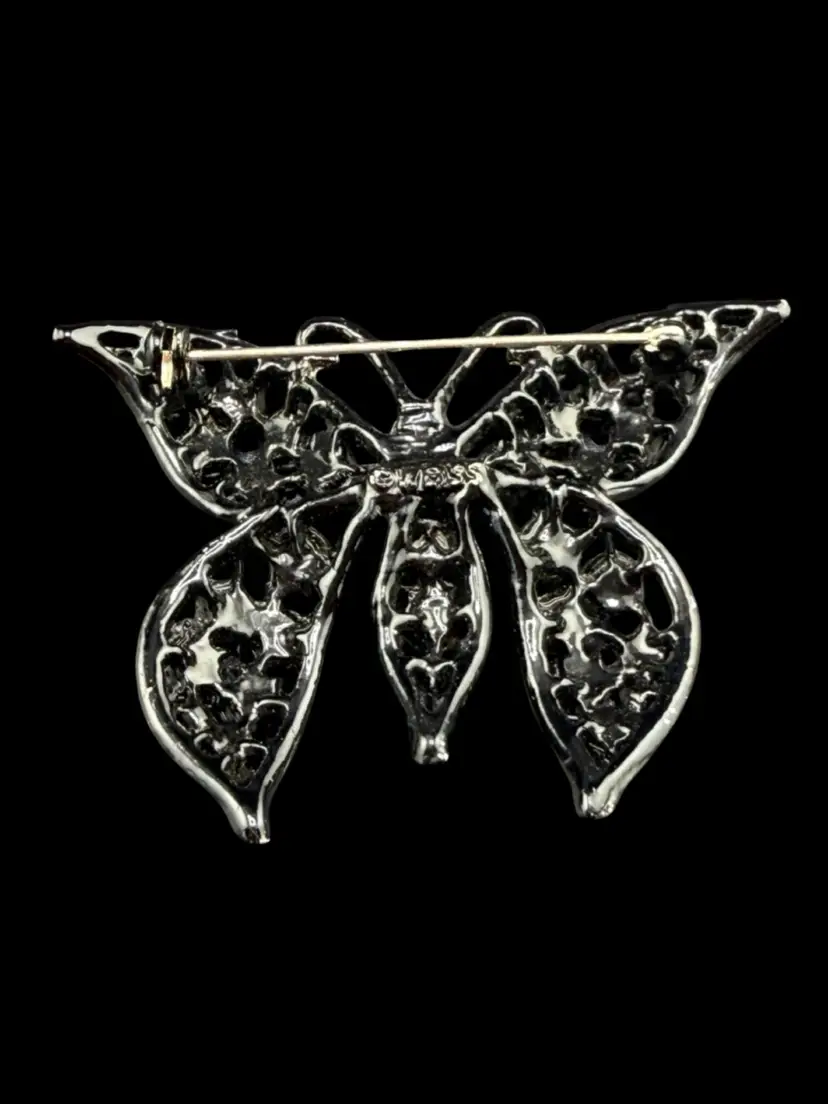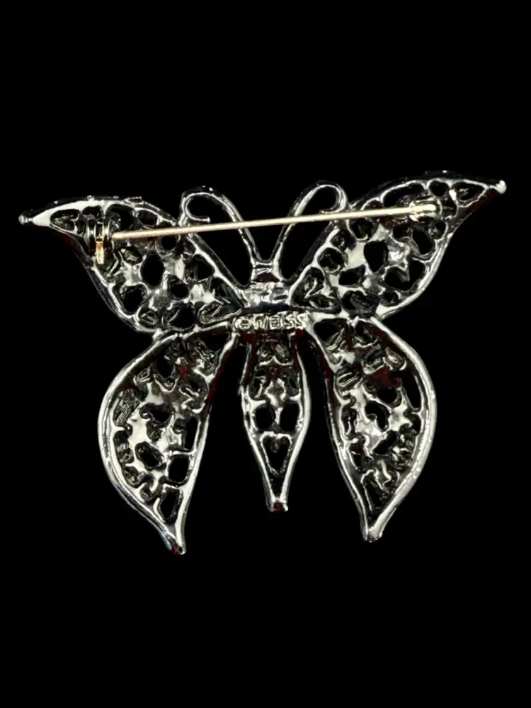 Weiss Black Rhinestone Butterfly Brooch 1 3/4 X 2 1/4"