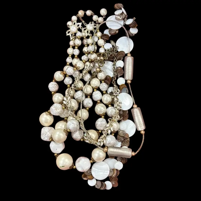 White Lot of 4 vintage white necklaces including a signed Coro Do you see it?