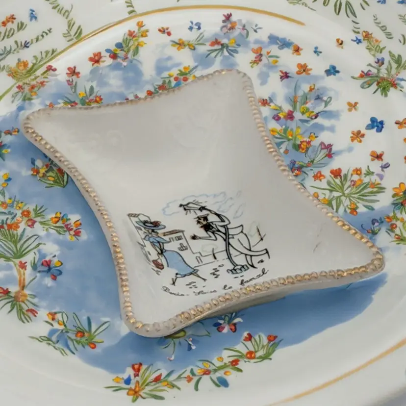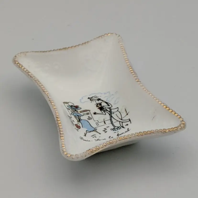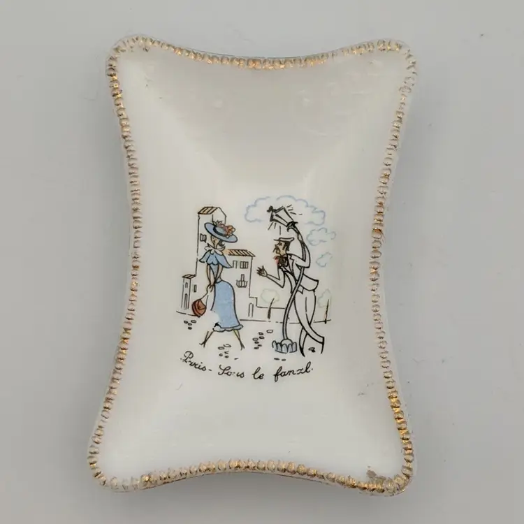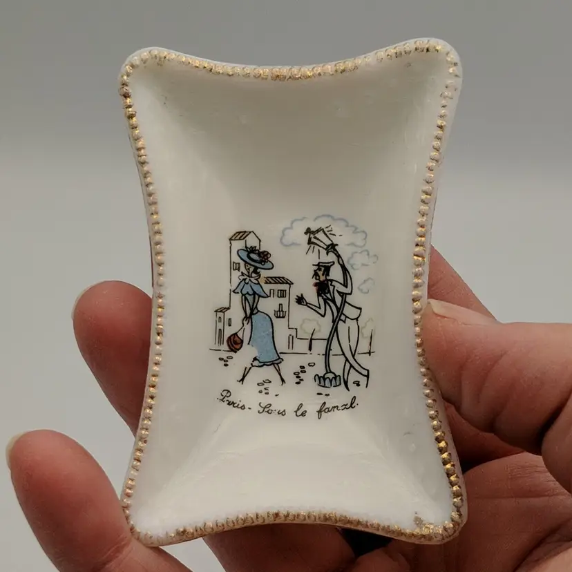 White Milk Glass Couple Paris Under The Lantern Open Salt Cellar Trinket Dish