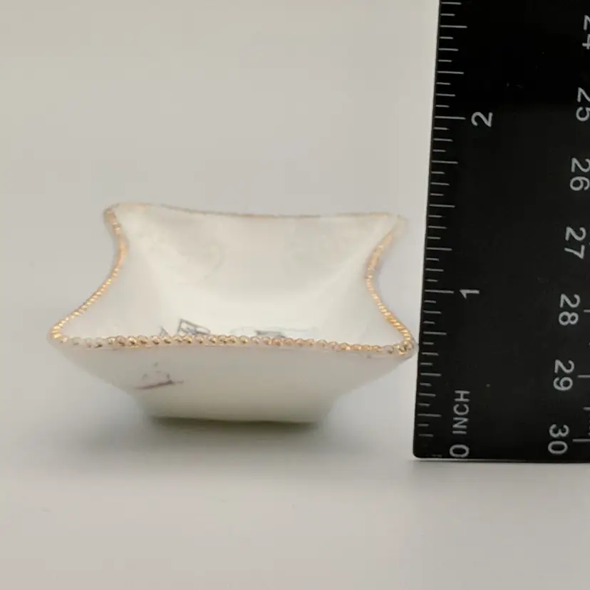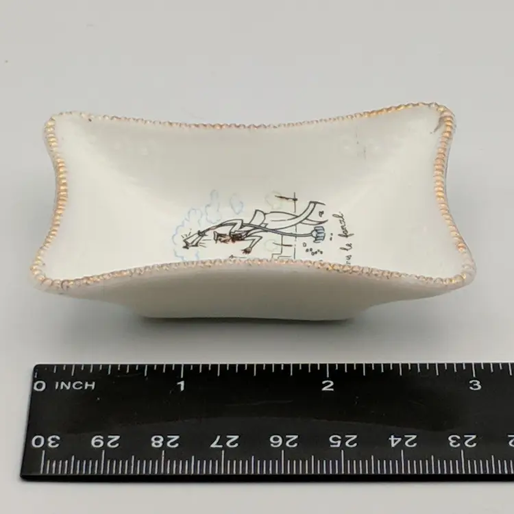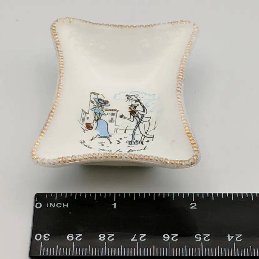 No chips or cracks, some wear to the gold trim and her blue dress shows wear Item Length: 2.25 in Item Height: .75 in Item Width: 3 in Type: open salt Item Weight: 1.4 oz