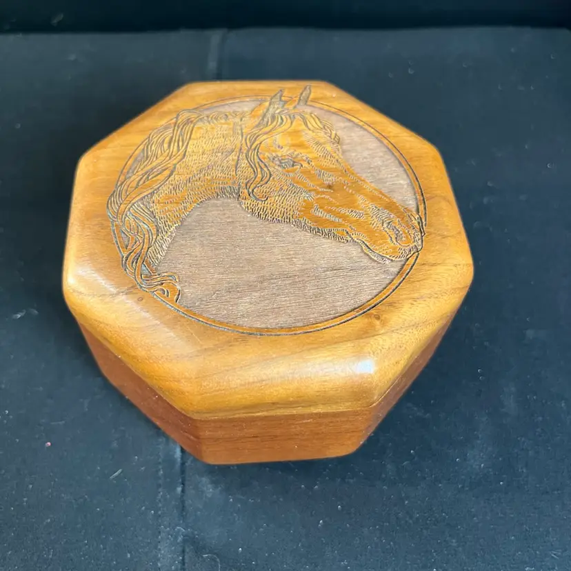 Very nicely crafted. Pretty horse head. It measures approx 2.25"H, 4" diameter, 4.3 Oz