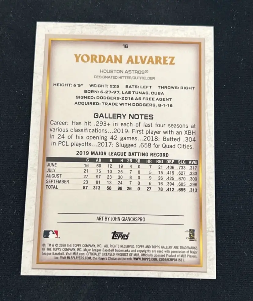 Yordan Alvarez 2020 Topps Gallery Rainbow Foil SSP #16 Rookie RC Houston Astros