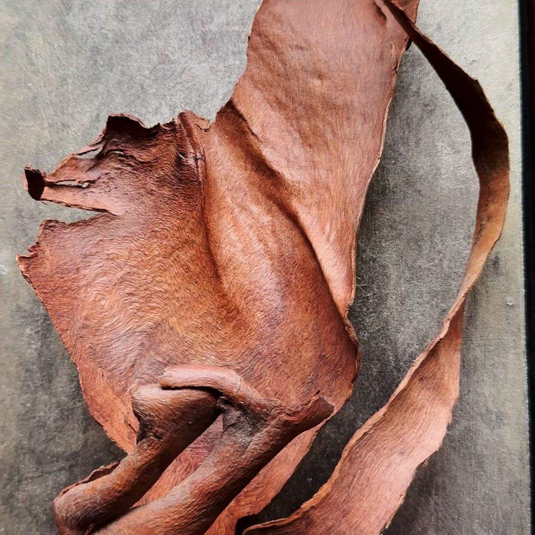 The Eucalyptus sheds these pieces naturally, like a scarf blown off in the wind. The form reflects their function, having protected the tree for months or years in uniquely sculptural, overlapping layers. I was very fortunate when I discovered my first example, startled and enraptured by its beauty. They are extremely elusive, buried amongst their less aesthetic siblings. I have to hunt for them now, obsessed with finding the next magical piece.