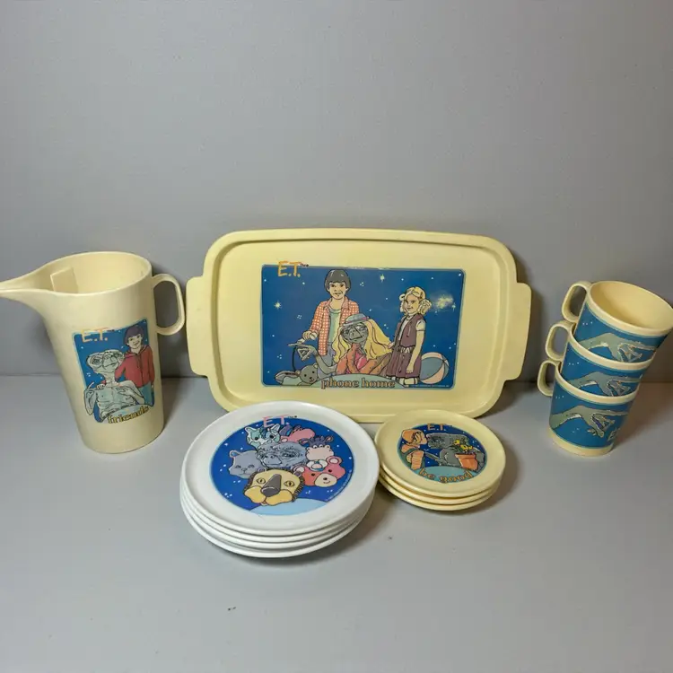 VTG 1982 E.T. Kids Teacups and Plates Pitcher Tray Tea Party 12pc Set