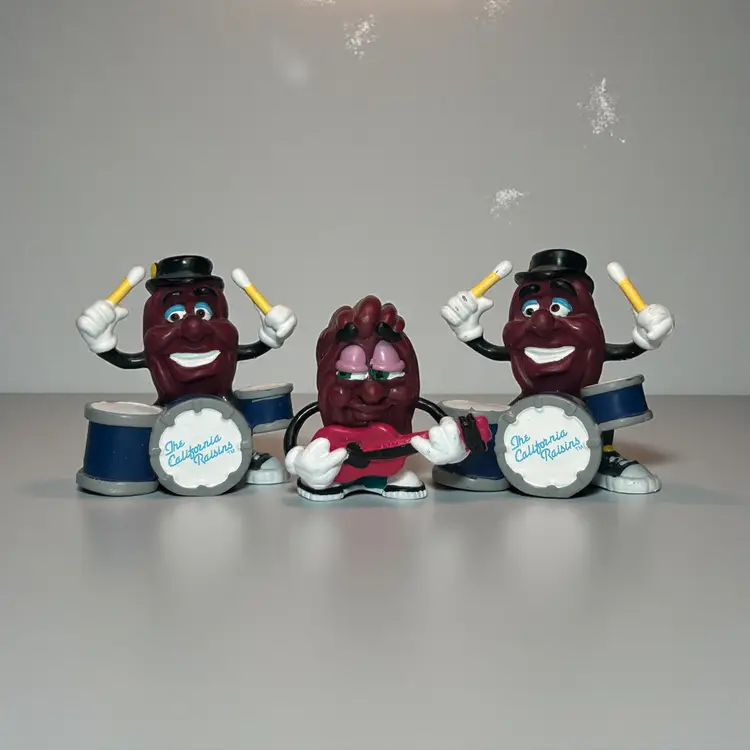 Lot of 3 California Raisins figures 1988 - (2) Drummer and (1) Guitar