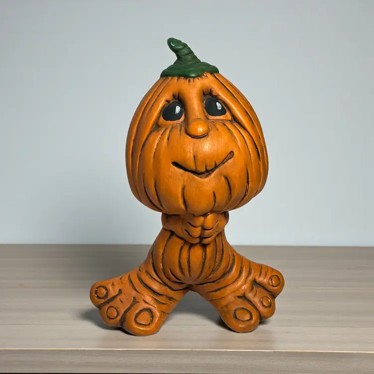1970s Hand Painted Ceramic Pumpkin Jack o Lantern With Big Feet Cute 6"